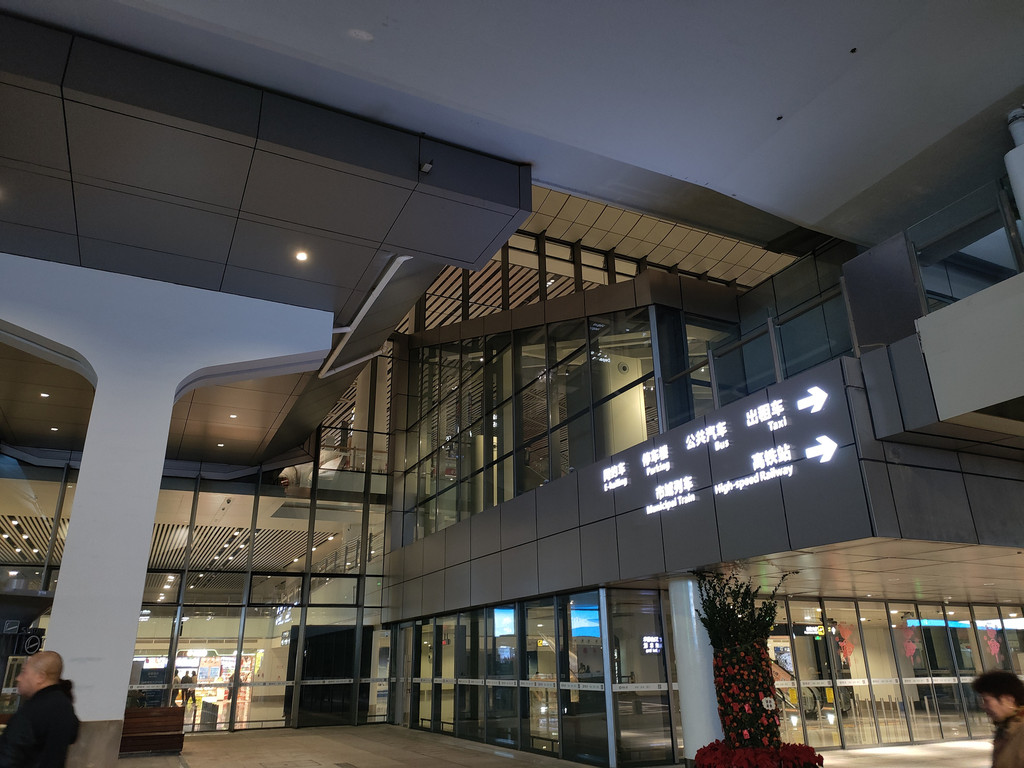 夜里飞机落地,出航站楼坐摆渡车到T1航站楼取车。办理取车手续大约15分钟。然后自驾机场联络线到酒店。大约30分钟车程。租的车是红旗E-QM5。