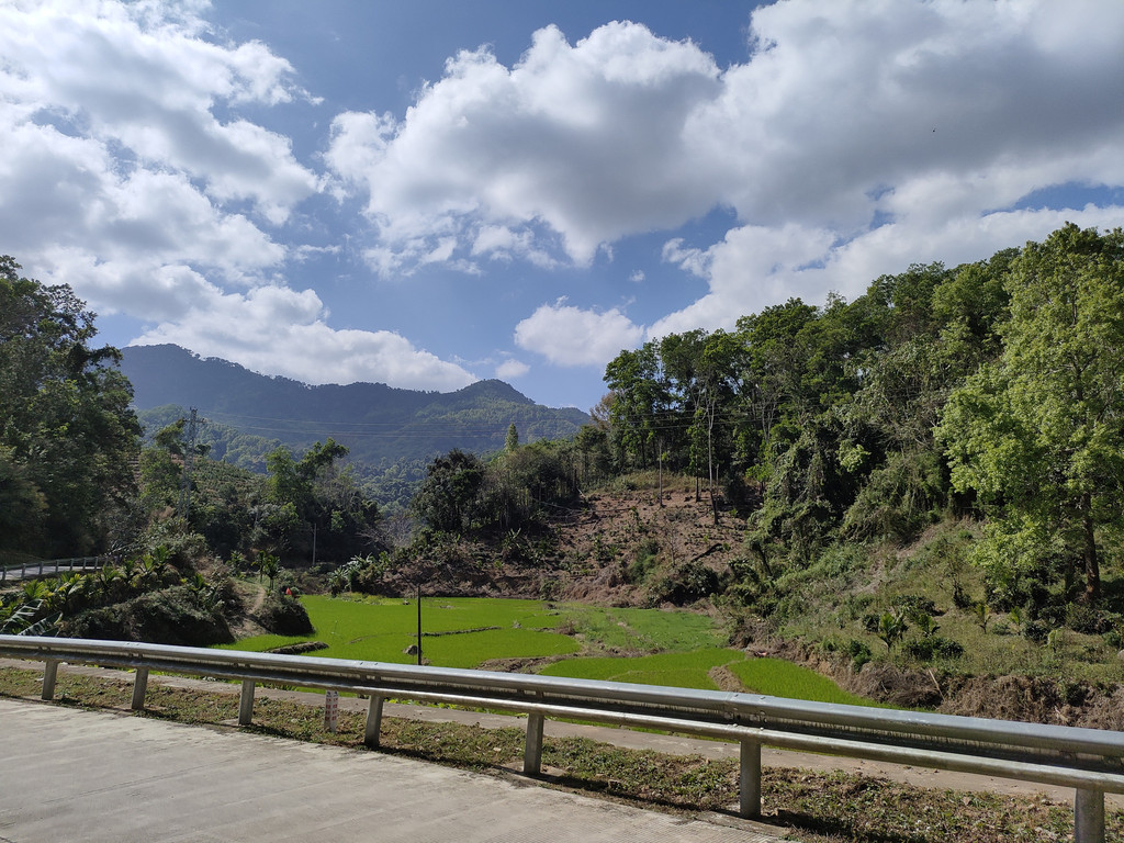 从儋州赶往五指山。原本的计划是由儋州前往东方。但东方整体住宿条件一般,景点比较分散且去景点的路比较难走,临时决定从西线的儋州切到中线的五指山。下高速还需要走大概30km,1h左右的山路,不算很难开。春节前后有不少木棉花,风景很好。