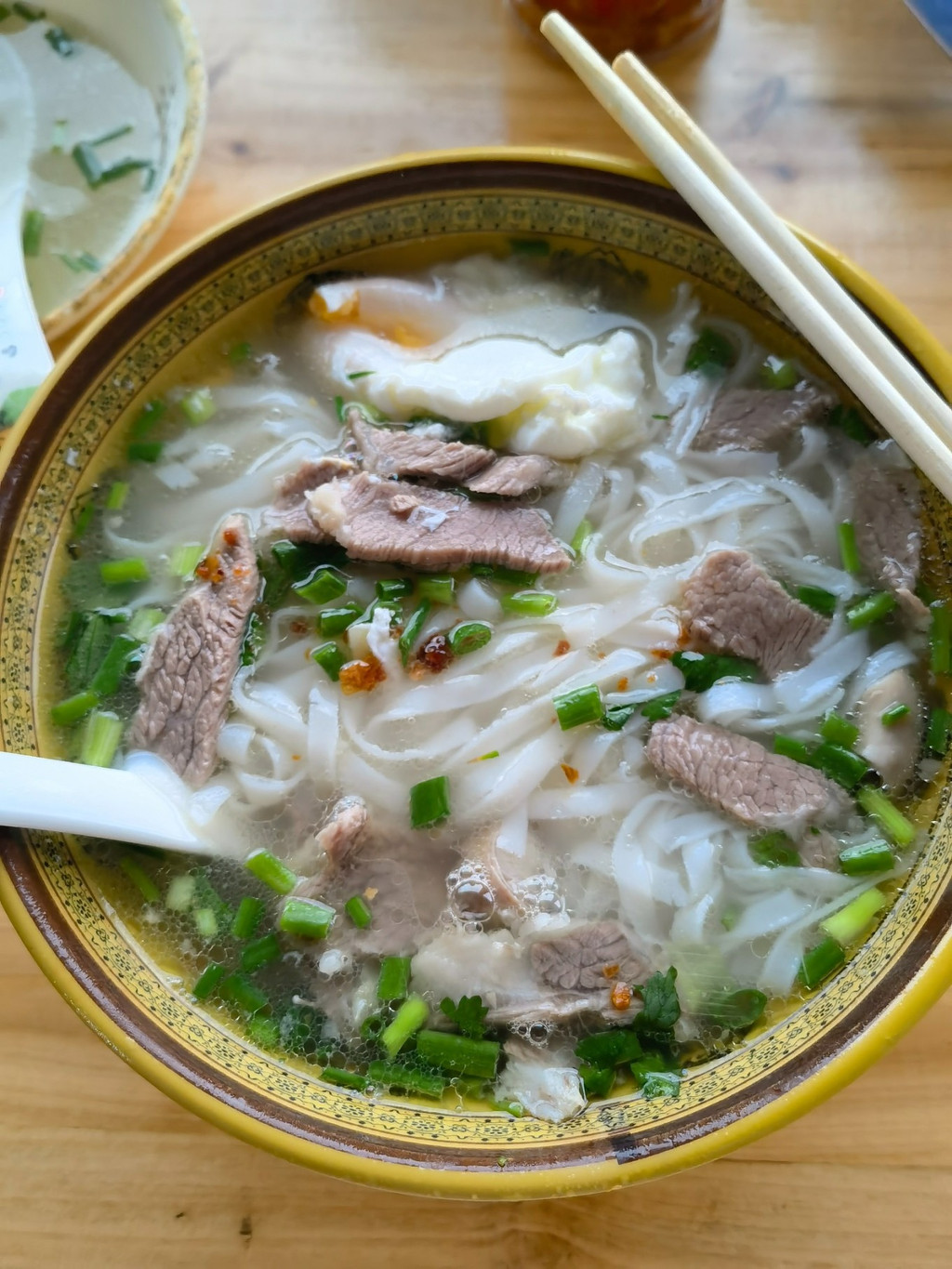 附近有一个黑山羊火锅,感觉不错,而且不远,我们就走了过去。嗯,确实味道不错,他的羊肉火锅里面放了木瓜片,特别的甜美,肉也很好吃。推荐。早上考虑到今天到龙楼镇,肯定会有很多车,怕堵车,所以我们7:30就出发了,延路我们吃了一碗当地的炒粉和汤粉,还行。