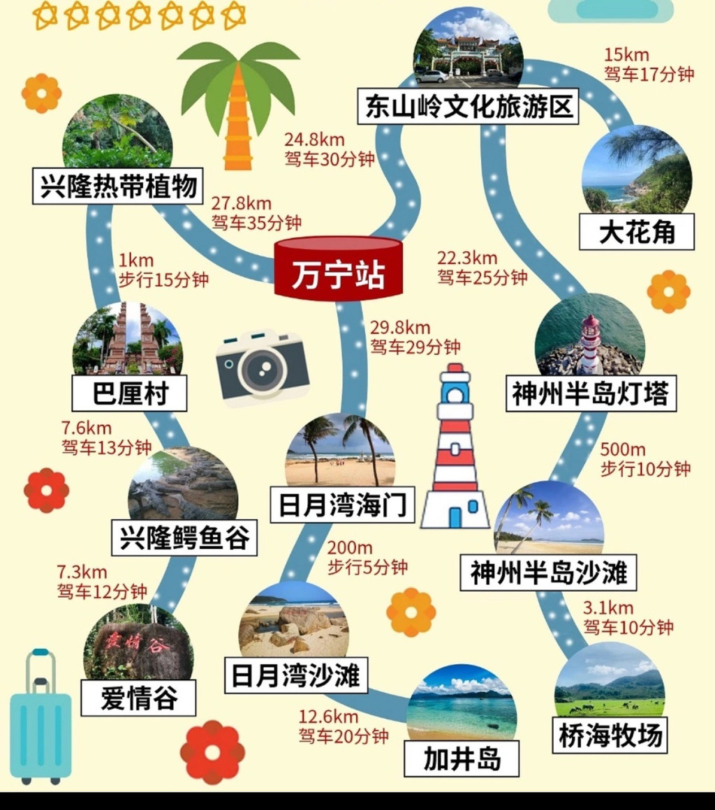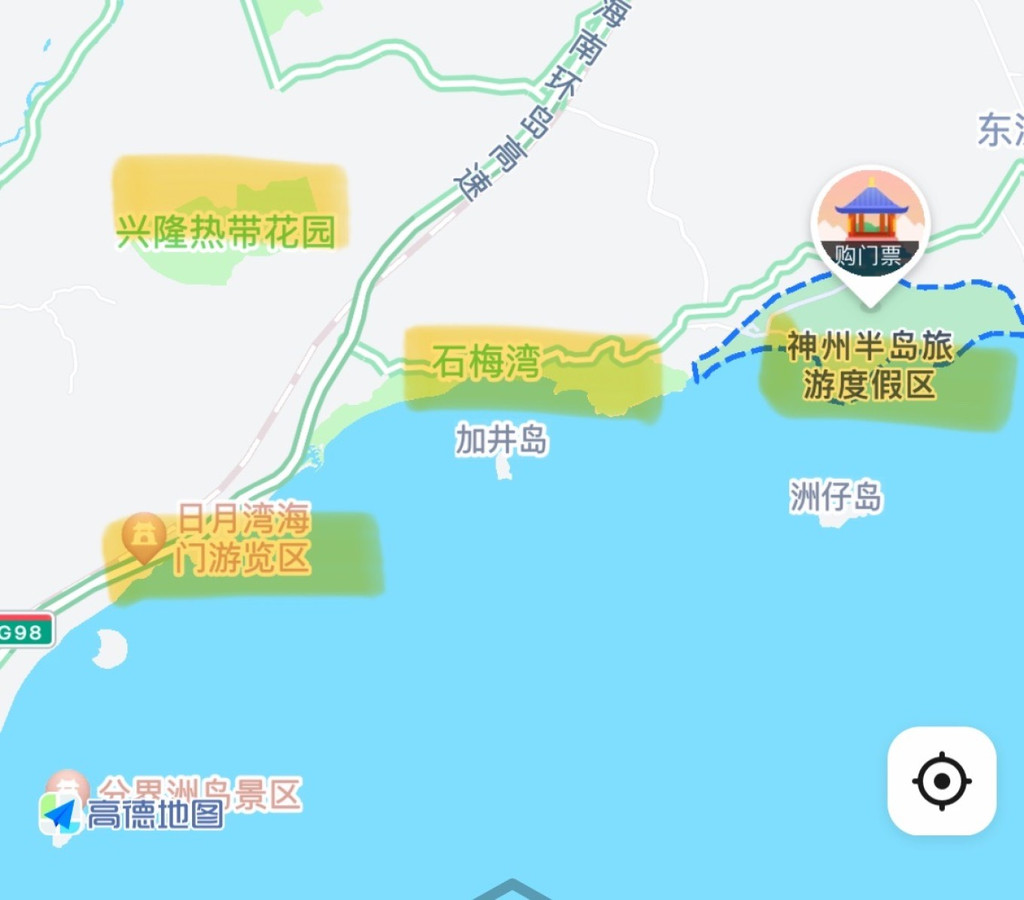 第二天从神州半岛直接去日月湾,自驾约40分钟。但是因为节假日堵车了30min。日月湾是几个景点最热闹的地方,尤其晚上,有酒吧,夜市,沙滩上放烟花,也很好玩。日月湾有很多电动车租,很方便游玩。参观景点有日月湾教堂,椰林公路,海门椰坊,216餐吧。