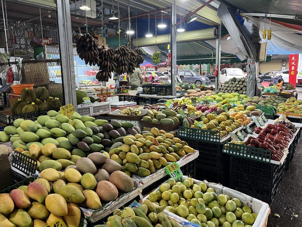途中经过了一个农贸市场,看到了很多卖水果的,弟弟说想吃莲雾,燕窝果,芒果和百香果,我就跑去都买了一些。没想到的是出乎意料的便宜,特别是芒果才2块钱一斤,莲雾也只要5块钱一斤。