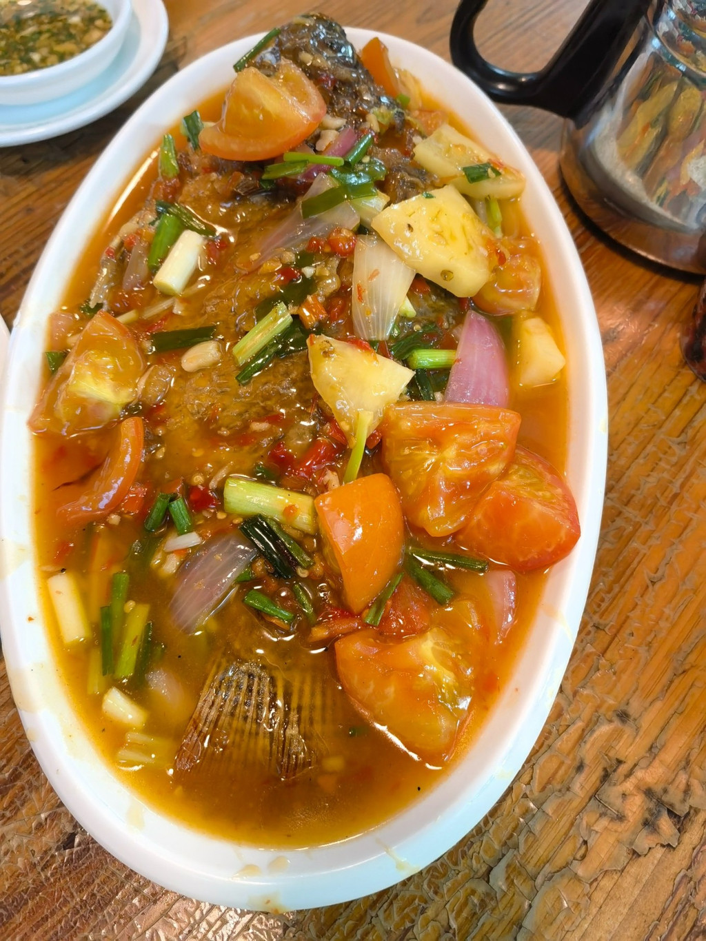 海南比较有名的除了椰子鸡,就是这种南洋口味的料理,其实和东南亚料理口味很像。我们挑了附近一家店,味道也不错。附近有一个当地市场,很多卖水果的。价格相对来说还比较实在。有时间还可以逛逛巴厘村。