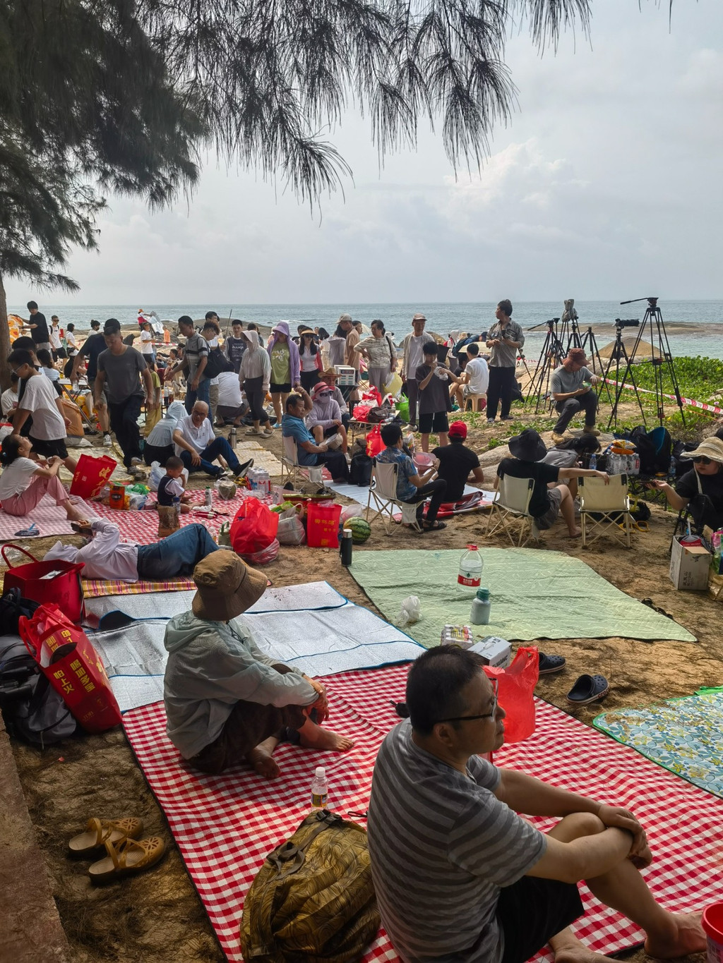 淇水湾边上的石头特别的多,并且飘上岸了很多海草,弟弟看着什么兴趣都没了。这是上午10点拍的,海边坐等火箭发射的人已经很多啦,开直播的,提前来站有利地形的,人满为患。