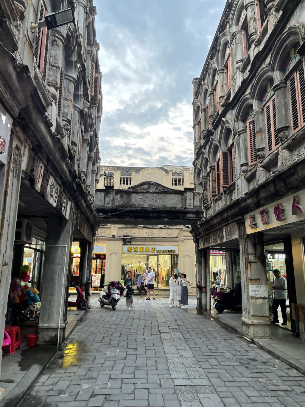 海南一共有三个老街,分别是海口市区的骑楼老街,文昌的文南老街和铺前老街。不知道是天气的原因还是本身这条老街就很荒凉,老街两边的铺面基本上都没有开,开的铺面也感觉特别的破旧,没有什么装修,里面都是黑洞洞的。我们从街头走到了街尾就离开了。