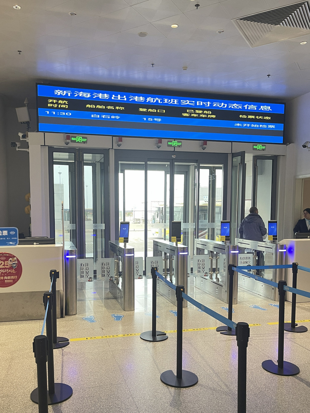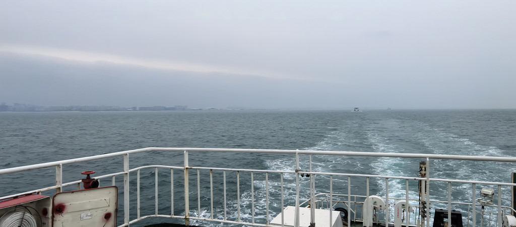 海上航行时间不到一小时,其他时间都用在港区进出了,全程约一个半小时。