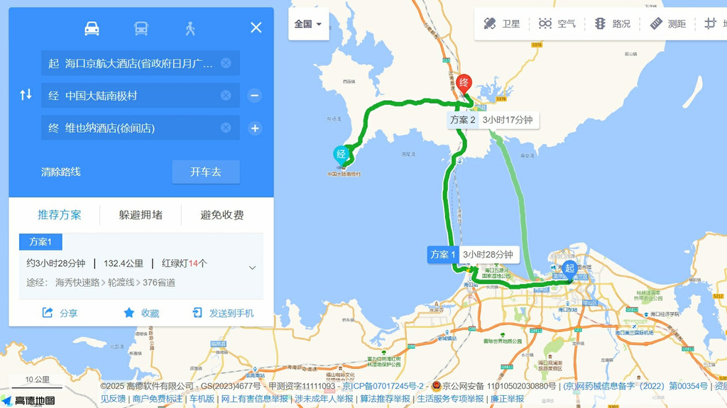 17:33 到达海口京航大酒店(累计行驶2738km)
