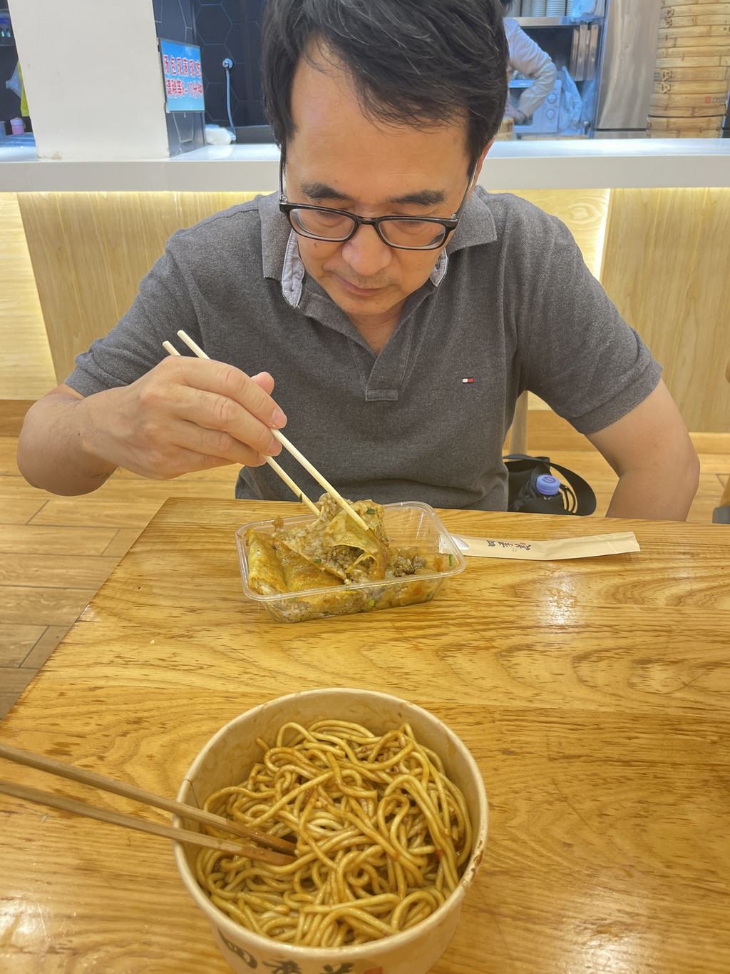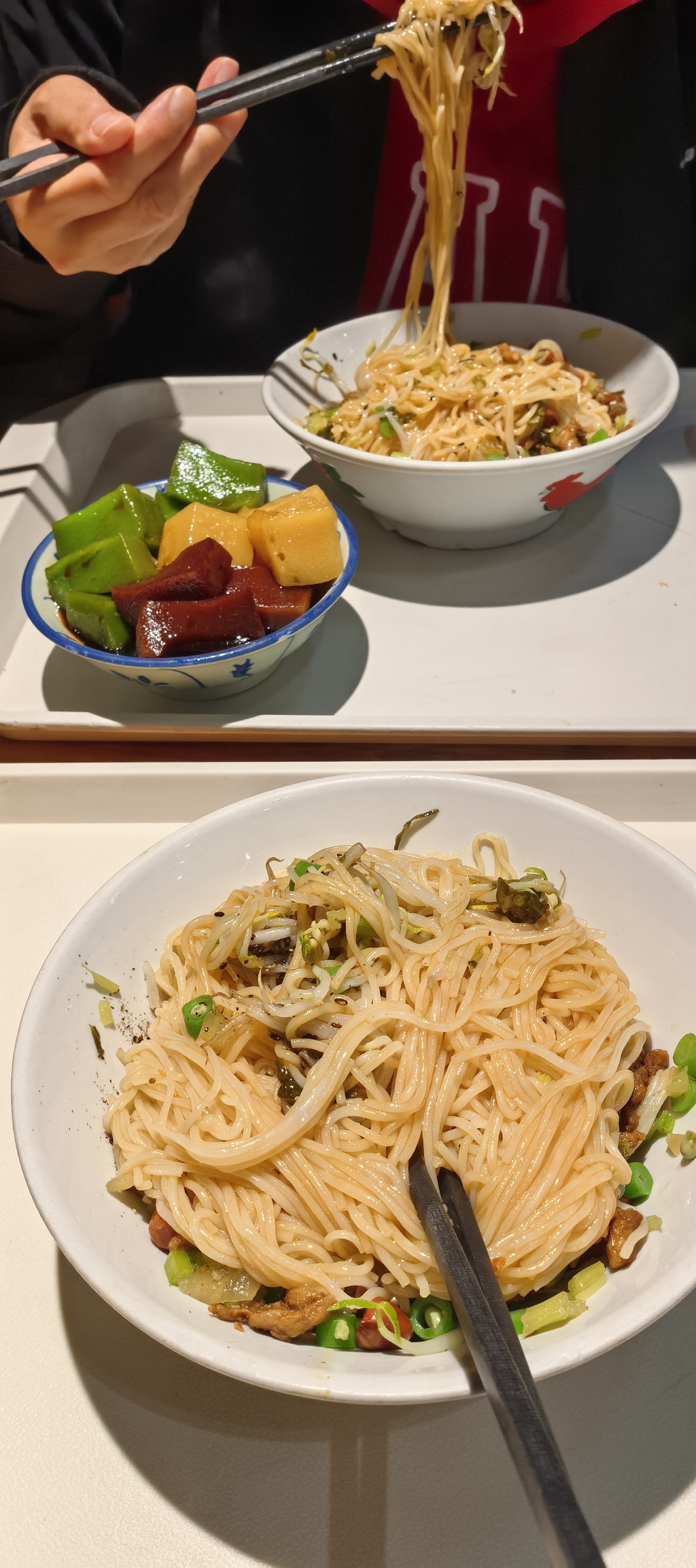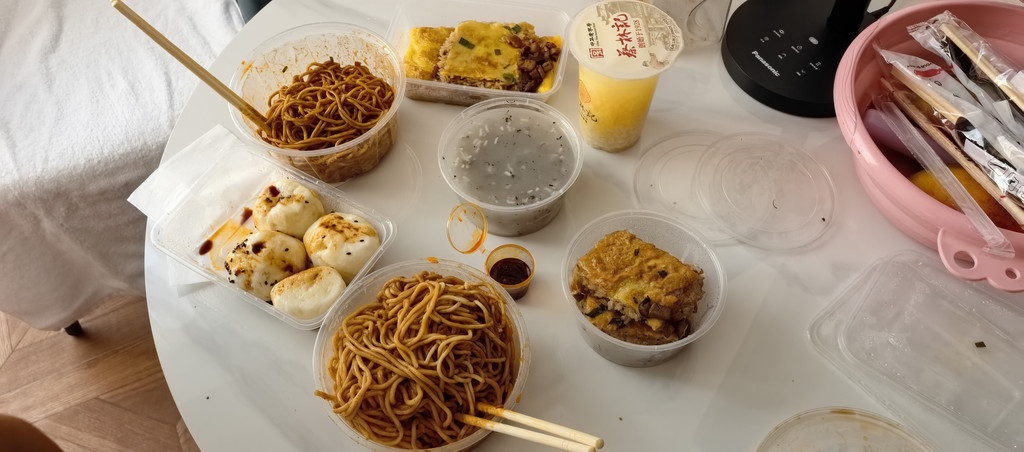 走路太多,累得不想动。叫外卖(豆皮、热干面、蛋酒)两个店各一份。