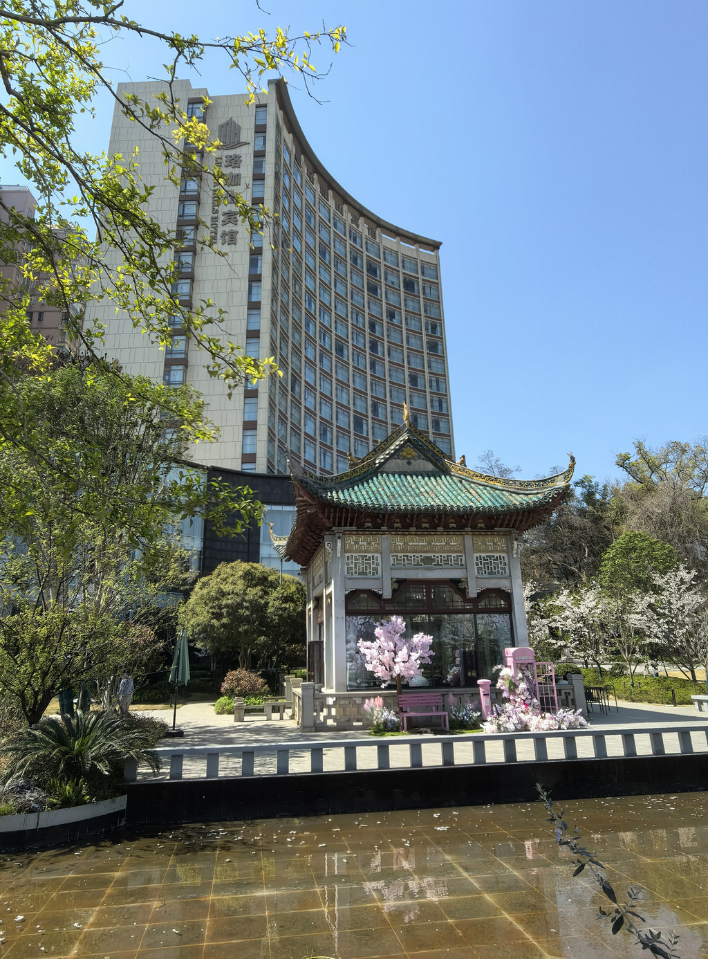 酒店两面临湖,背后是包括武大在内的院校和科研单位(比如水生物研究所、病毒研究所等),另一面是八一路。远离市区(在武汉打个出租不贵),比较清静。