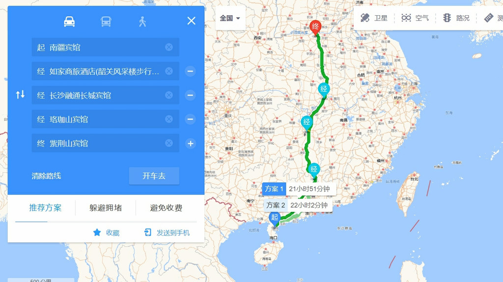 三、出岛(7天):海口-徐闻-湛江-韶关-长沙-武汉-郑州-北京