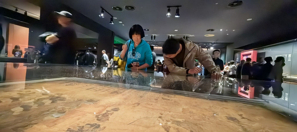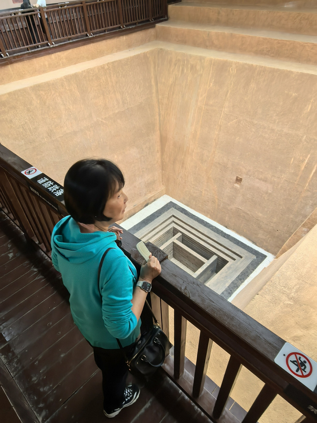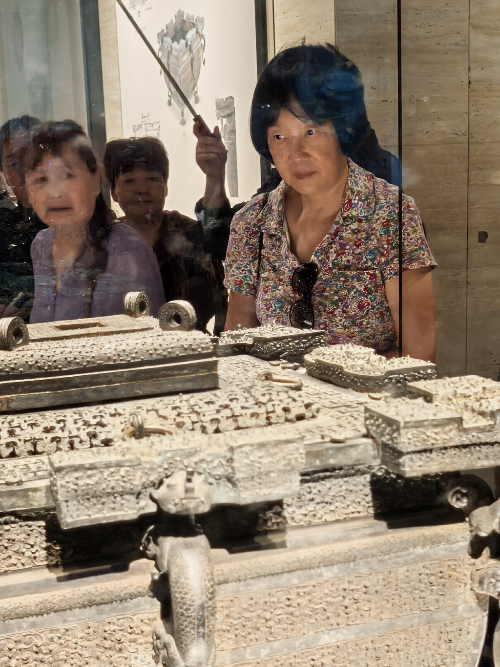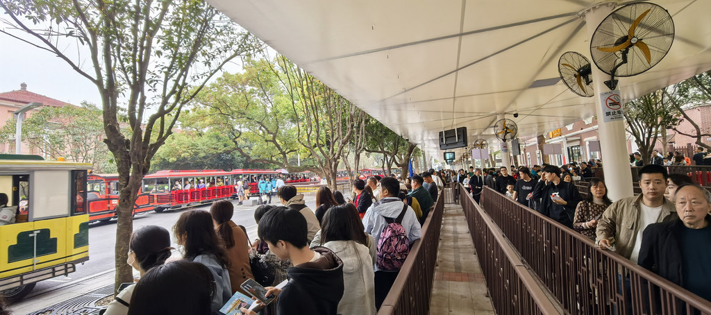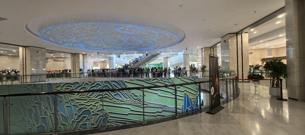 没想到“看剑”这么多人,转着圈排队(远处电梯那里是队尾,我们在进口处拍照)。
