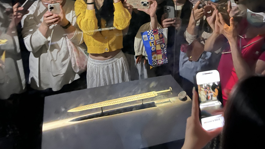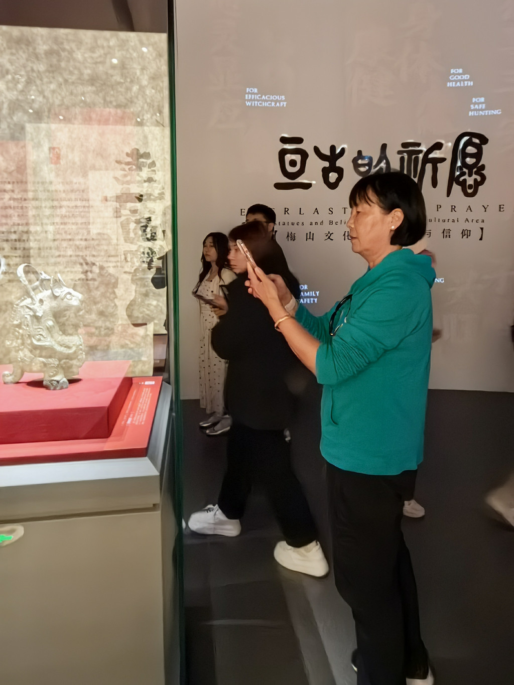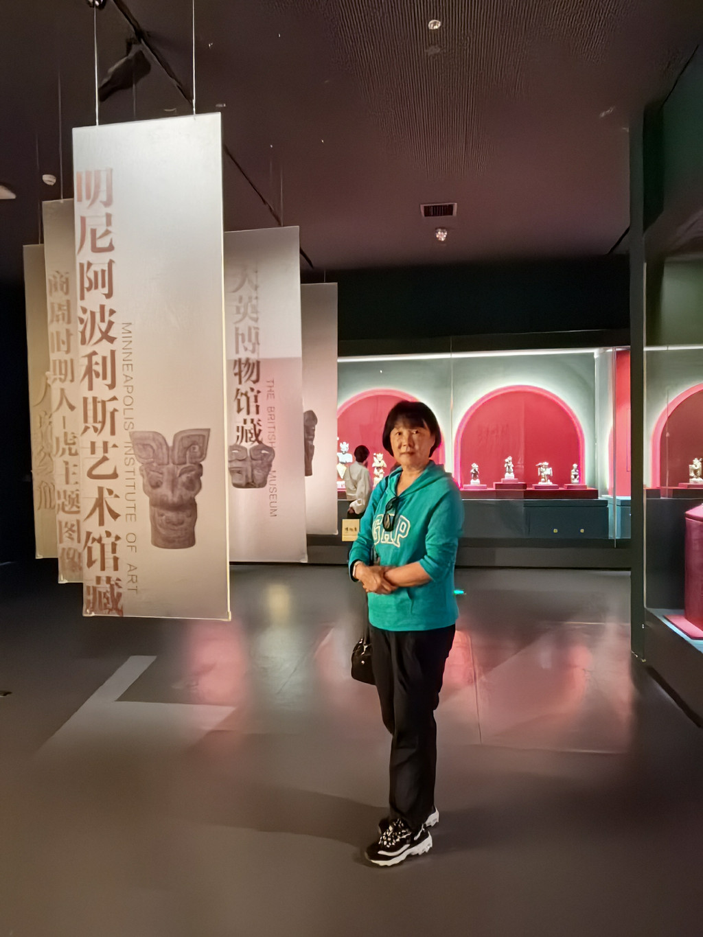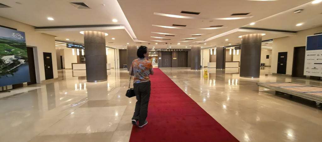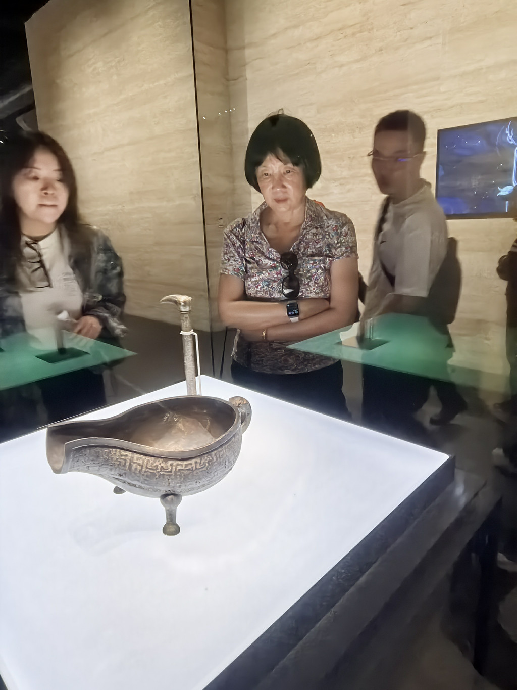 没想到“看剑”这么多人,转着圈排队(远处电梯那里是队尾,我们在进口处拍照)。