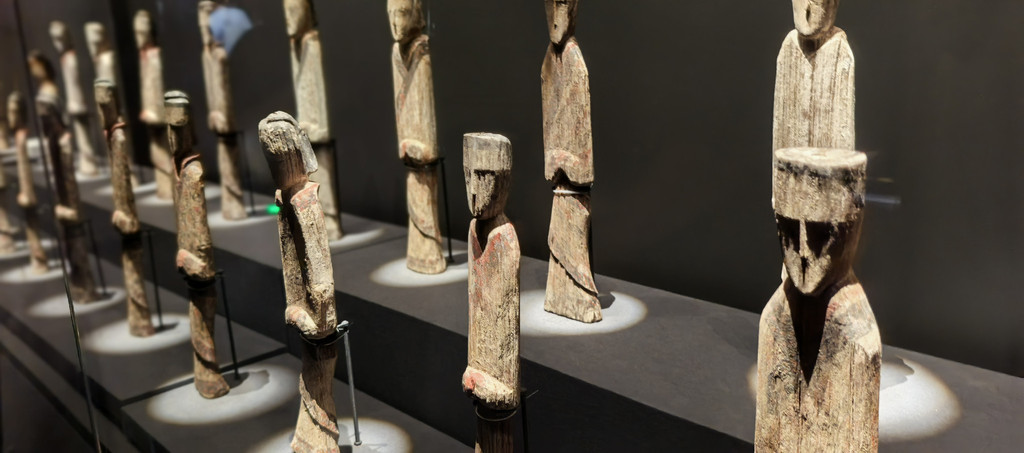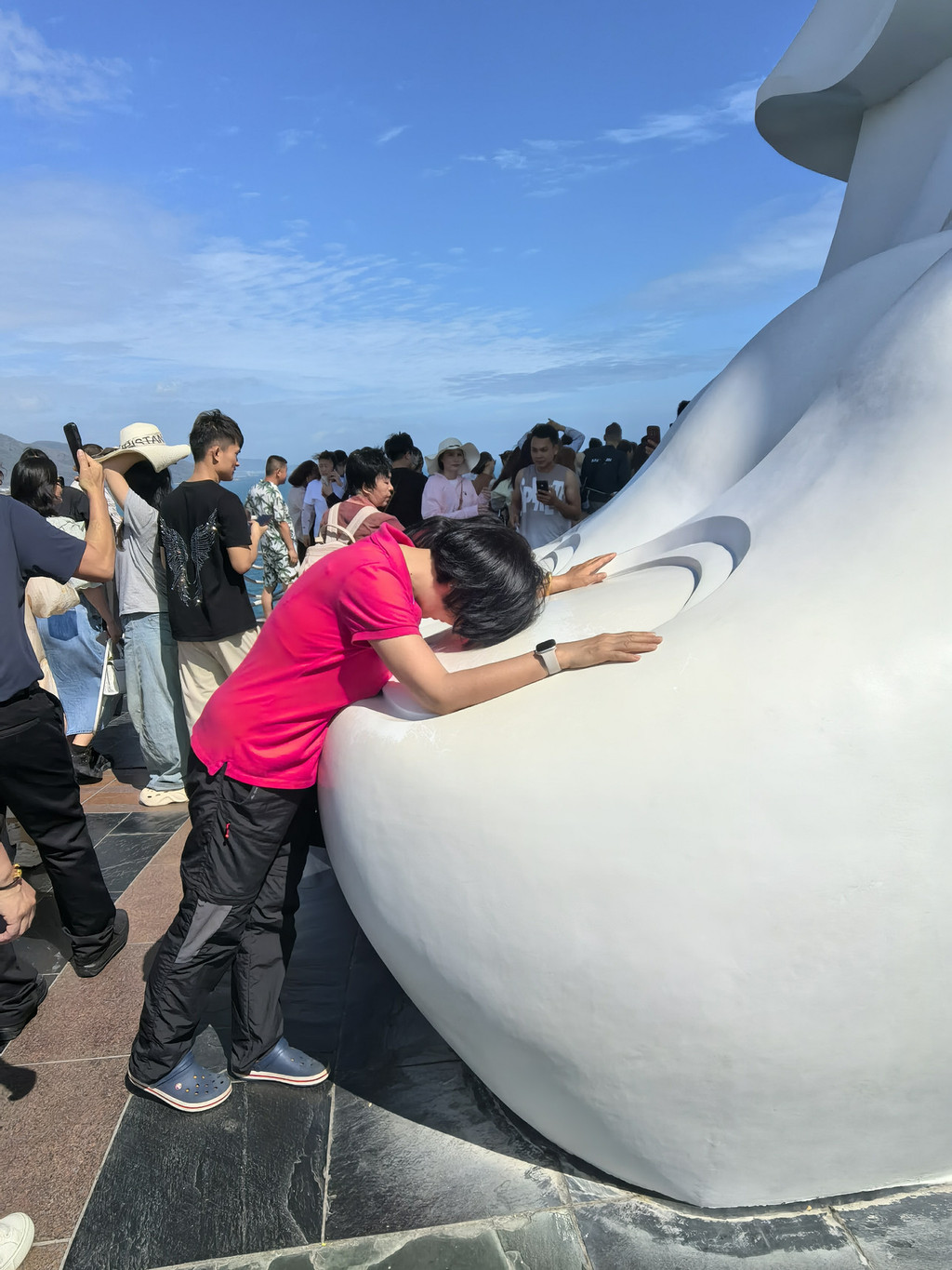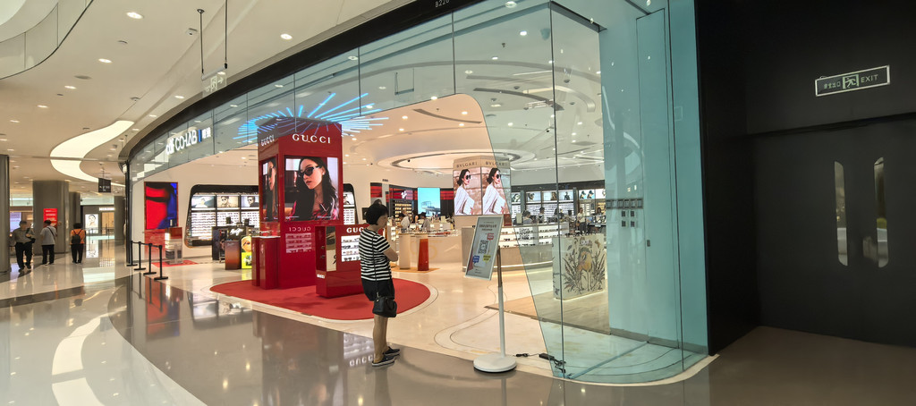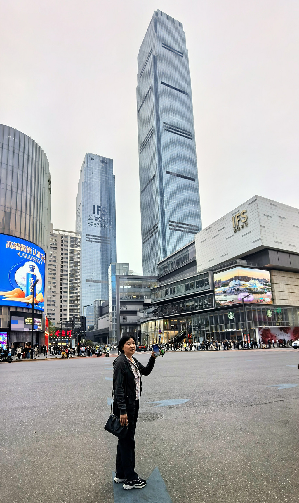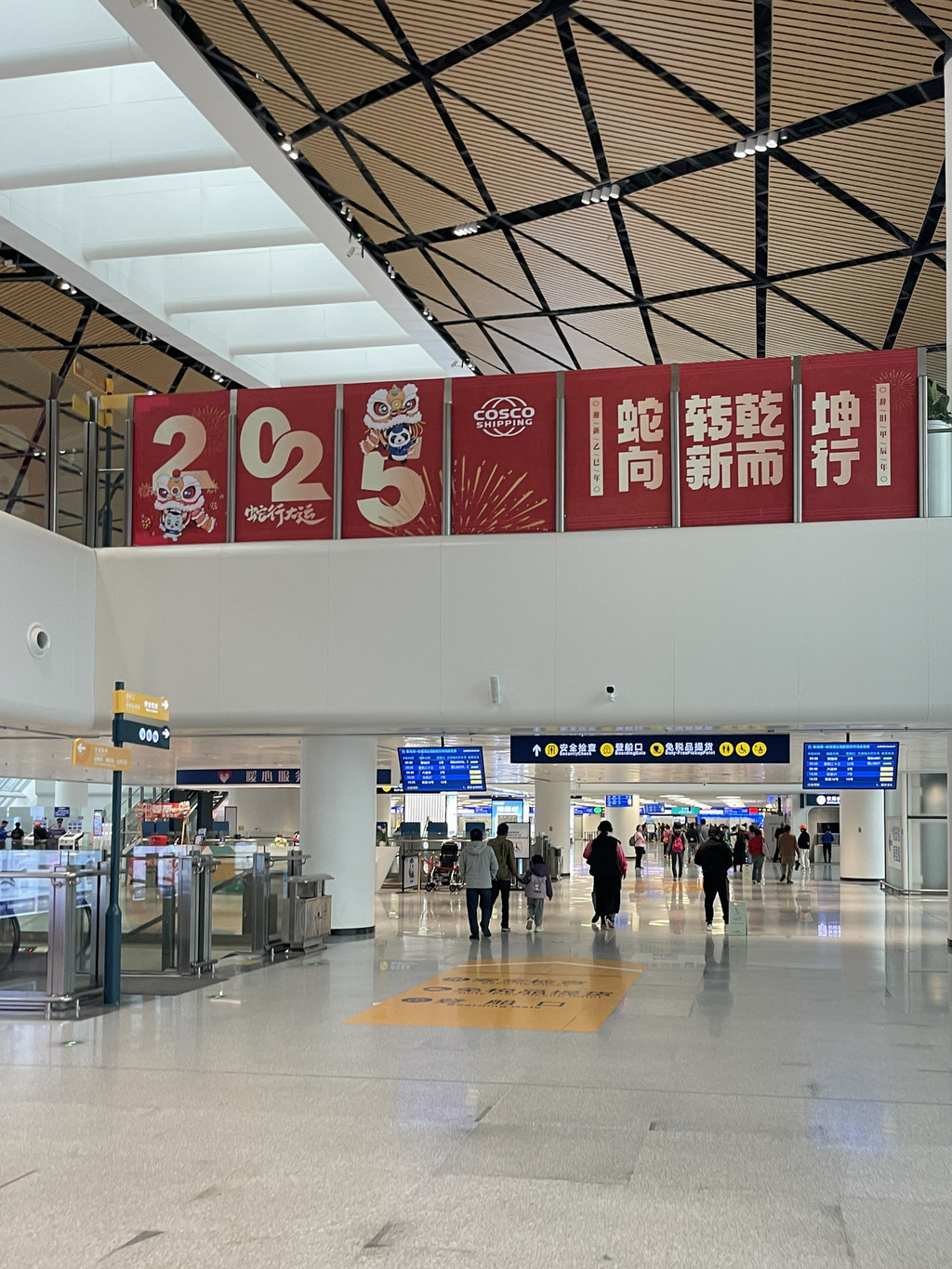 没想到“看剑”这么多人,转着圈排队(远处电梯那里是队尾,我们在进口处拍照)。