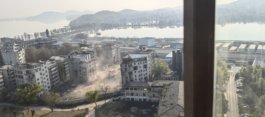 这个酒店往东到东湖边正在拆迁,清理完了会更漂亮。