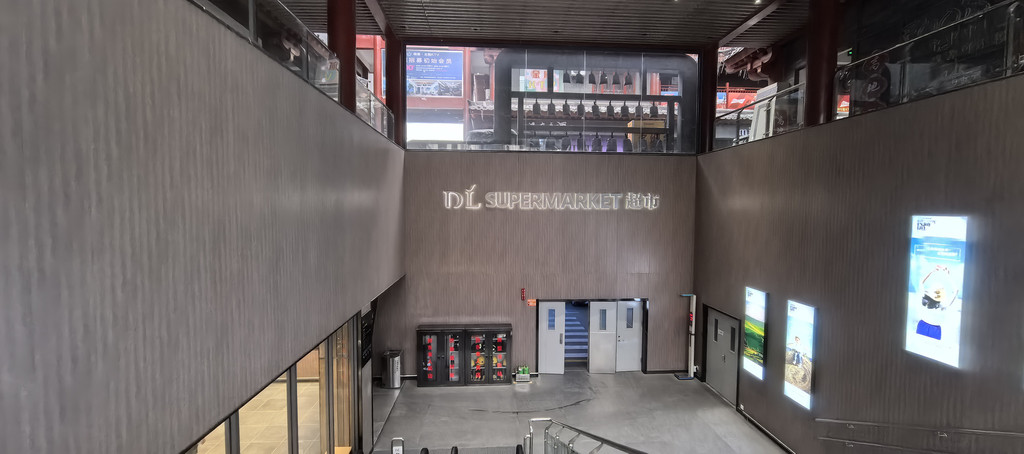 这是胖东来生活超市出入口,也是酒店人员的出入口(左侧同一个门),正对着的那个门是停车场。