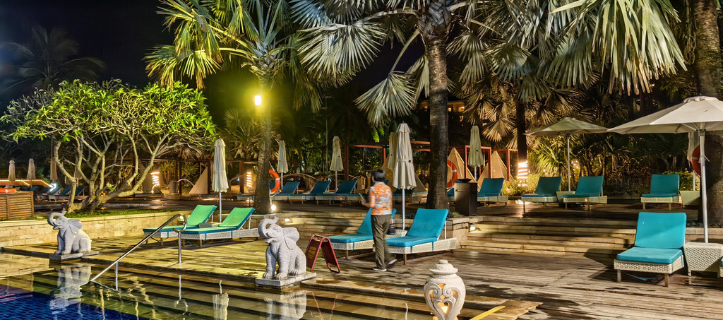 除了区域内那个酒店还有点儿人影,基本上空空荡荡。