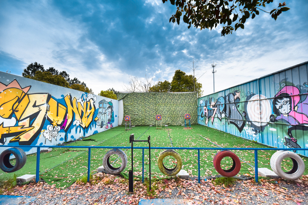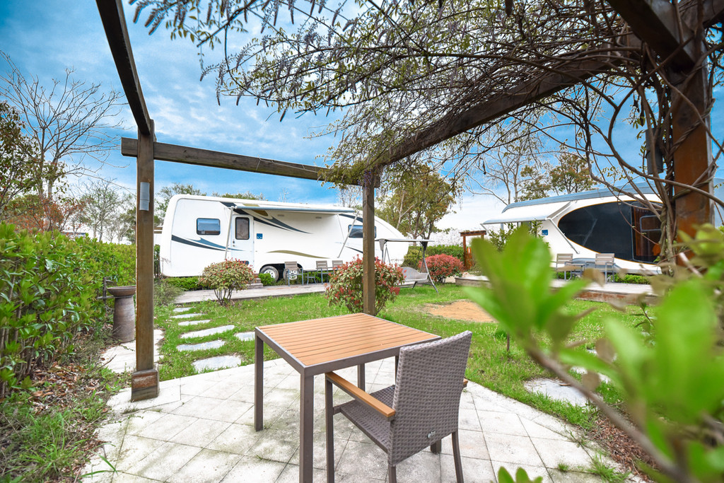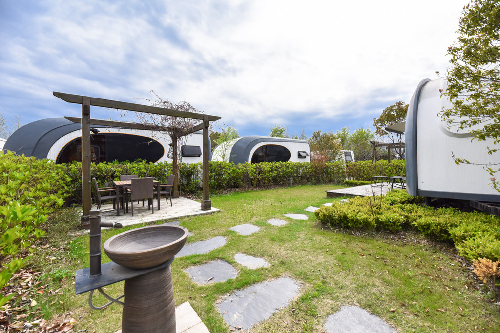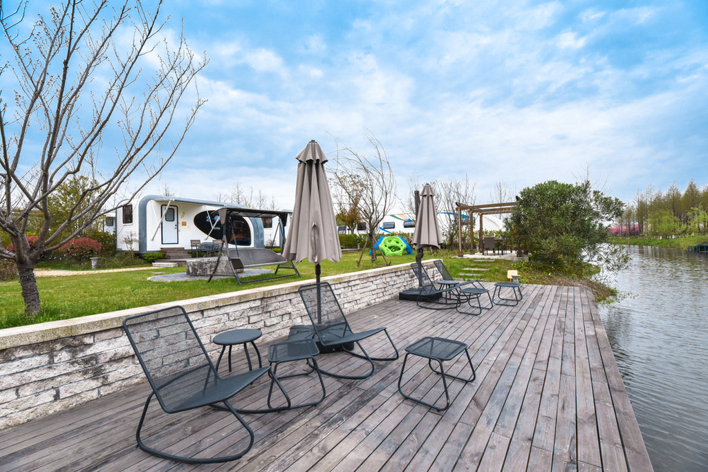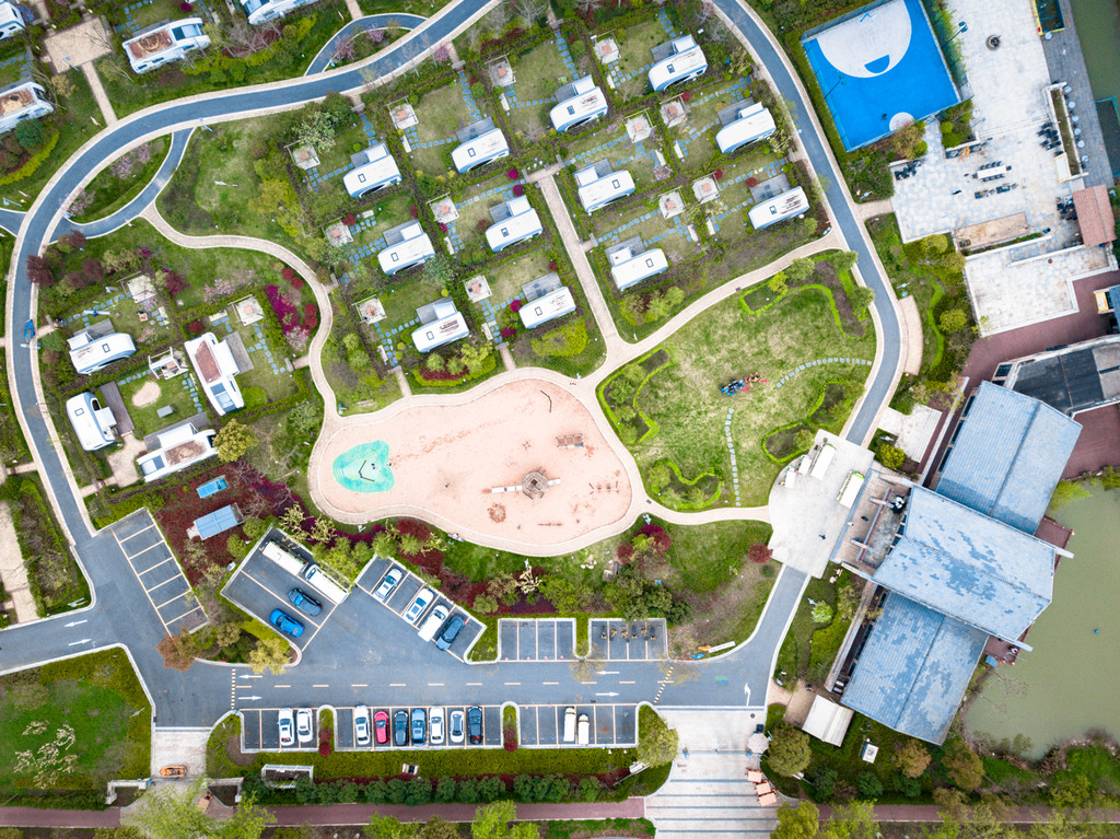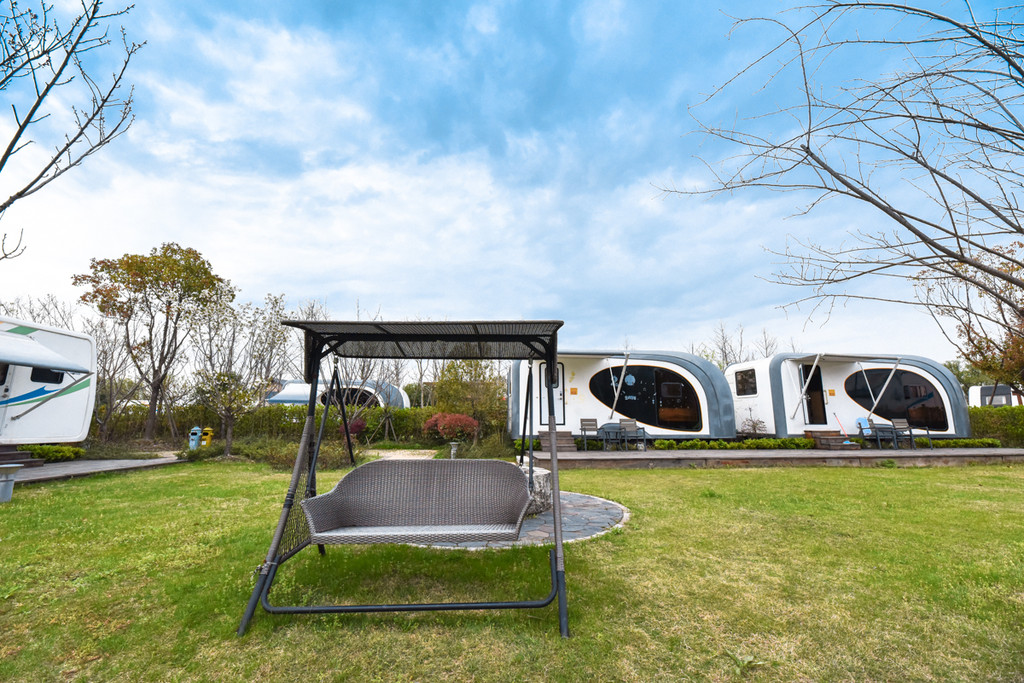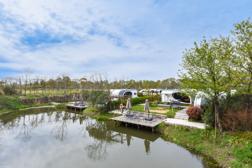营地占地面积为2.7万平方米,共有37个房车庭院,内含57辆高档房车,以及4个移动房车车位。配套有酒水吧、全日制餐厅、多功能会议室、棋牌室等室内休闲场所,以及儿童乐园、篮球场、射箭场、真人CS、树屋部落等户外体验场地;可提供家庭户外休闲、露营体验、企业会议、团队培训、拓展训练、组织各类聚会、婚礼、户外竞赛等!可谓是吃喝玩乐游购娱,一站式体验。这也是目前江浙沪乃至国内都比较新潮的郊野度假体验新方式。