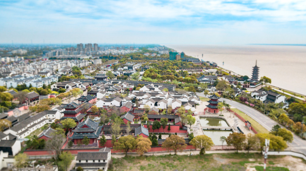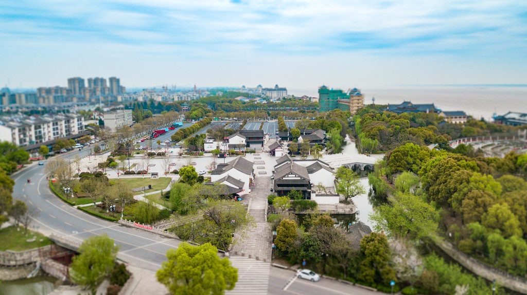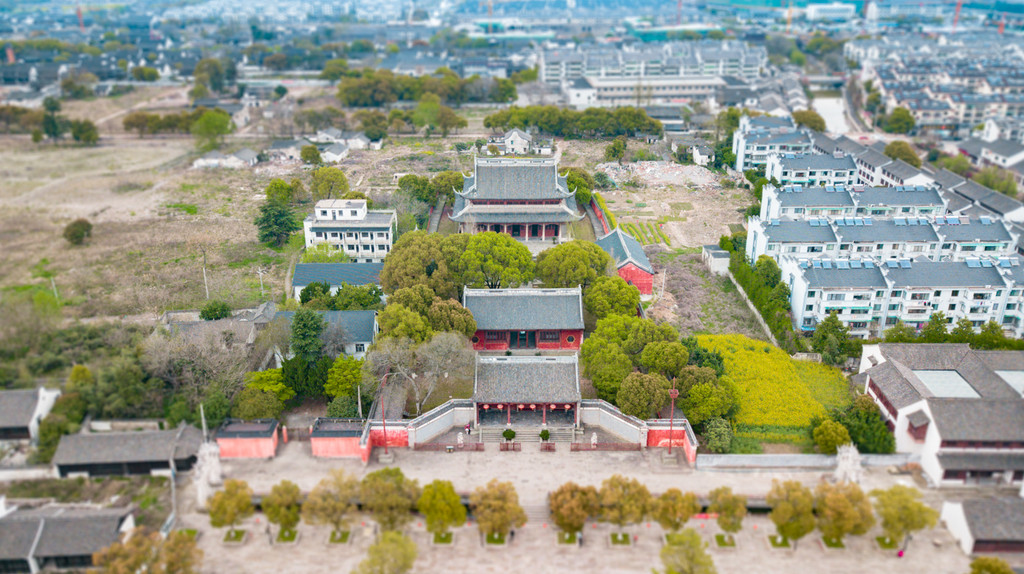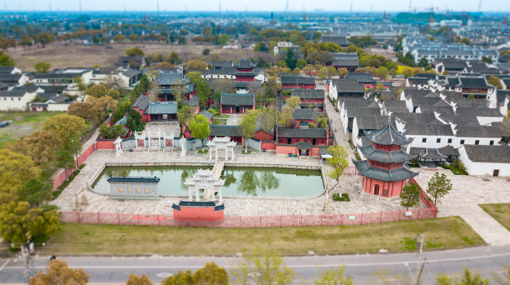 航拍视野下,学宫与盐官观潮胜地公园近在咫尺。重修过得学宫以红色为主,更为醒目。在古代,寺庙与皇家园林,可用黄色,凡人是不能用这种至尊无上的颜色。但是在不同朝代,颜色也在发生变化。故宫院墙很多也都是红色。所以从颜色上辨别,它的历史、文化地位非常之高。钱塘江大潮孕育了盐官,孔庙学宫教化了盐官人。