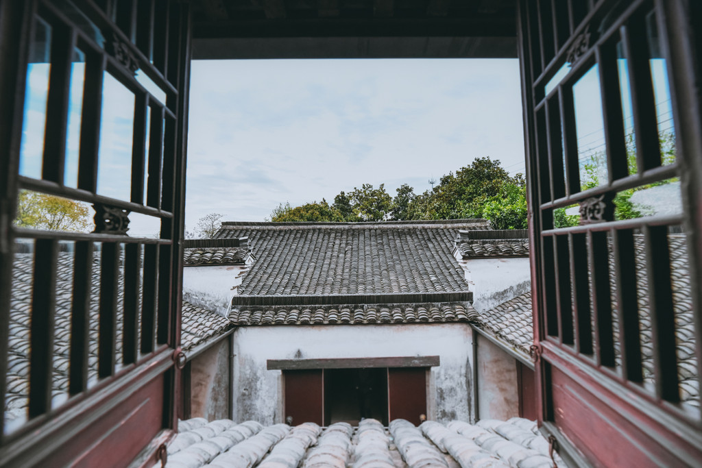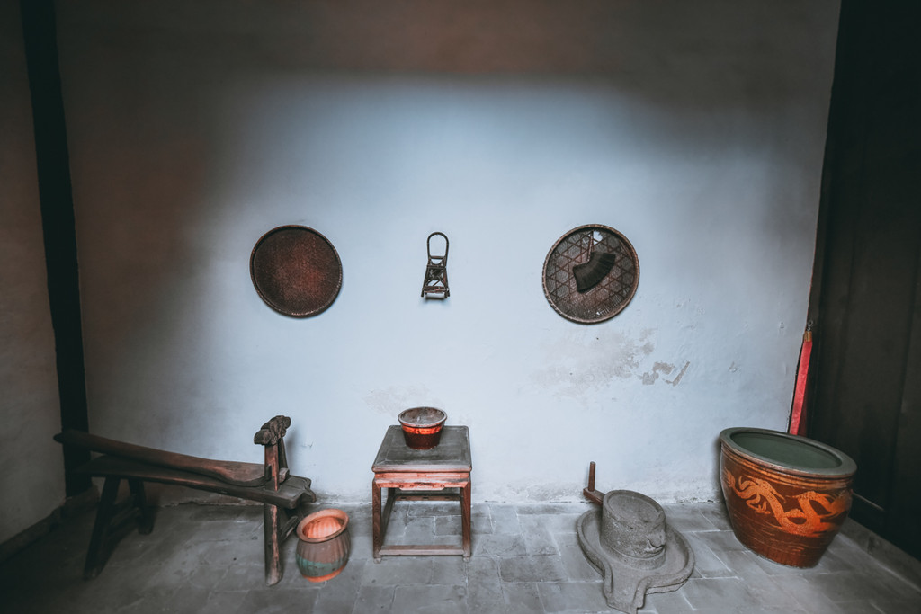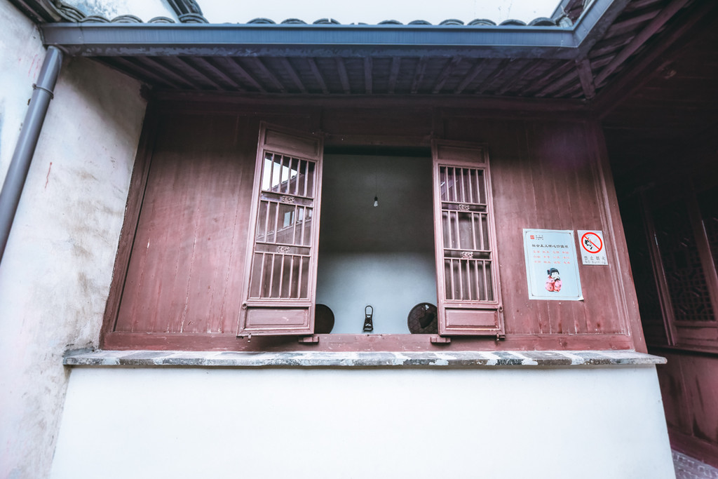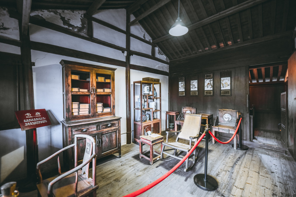 这些老物件,是当时同时期当地百姓所用,自故居修建之时,收藏摆设其间。可见他生活清贫。站在二层寝楼放眼窗外, 海宁 古城老建筑,就呈现在你眼前。曾经的 海宁 城区就是盐官古镇所在地。虽说按现在家庭住宅面积来审视,他家还是很大,不过紧凑的布局,还是略显小气。不过也可以说是小家碧玉范。