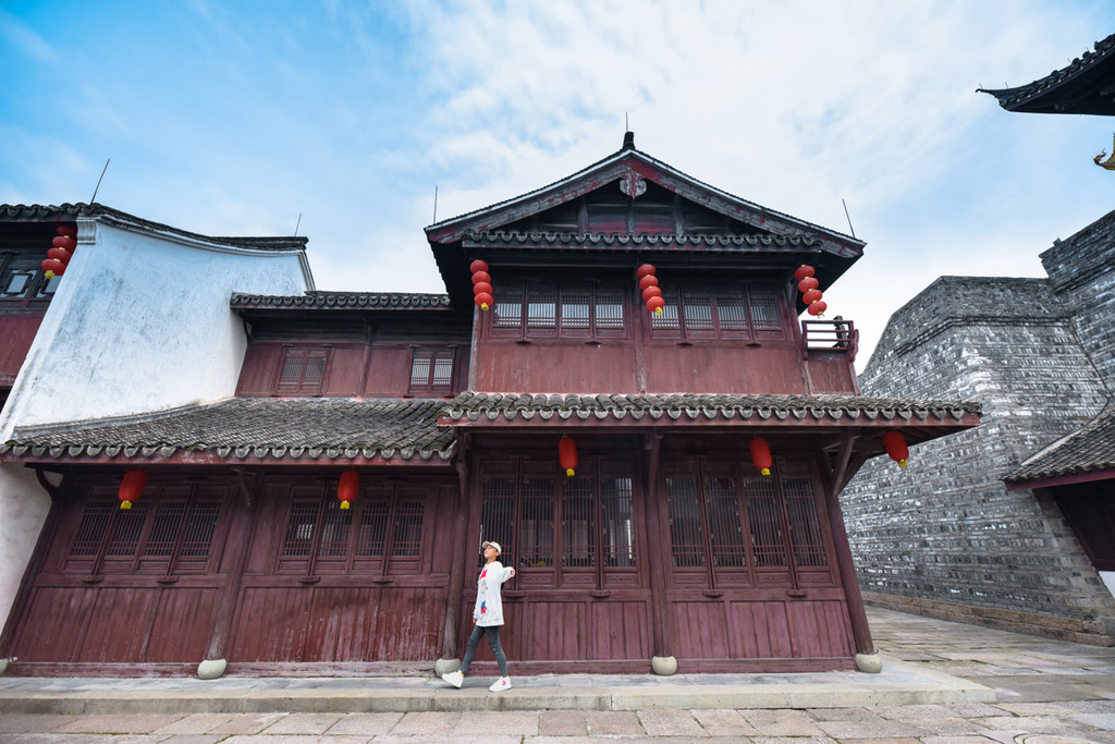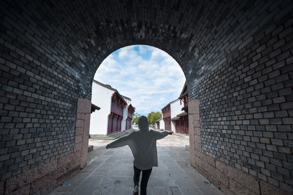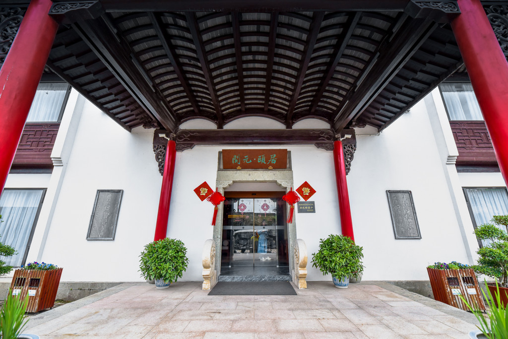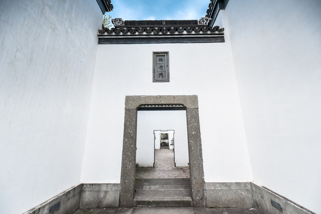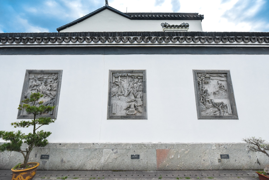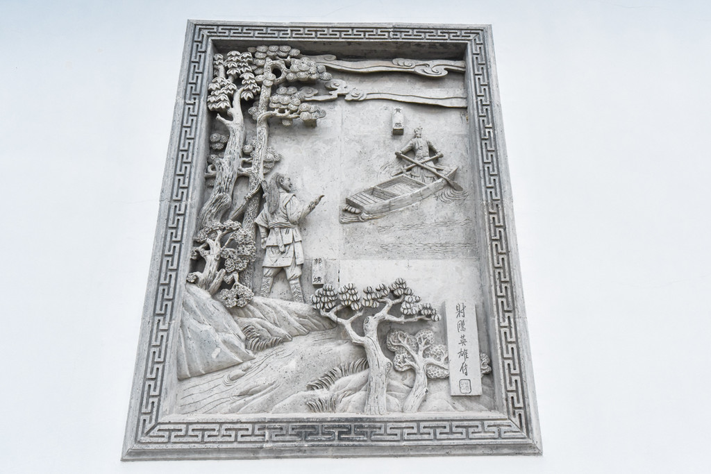 航拍视角下,2008年开工、2010年落成的金庸书院,建筑布局参照清朝最负盛名的经学家阮元在盐官创办的安澜书院建造。俯瞰之下,建筑大体中轴对称,院落、廊道、甬道融合,合围一处水池,像极了 江南 园林风格造诣。不过,粉墙瓦黛、烽火马头墙、格窗、砖木石雕、门罩、窗楣、照壁等这些元素,却是正经八百的徽派建筑特色。为何如此?接着往下说。