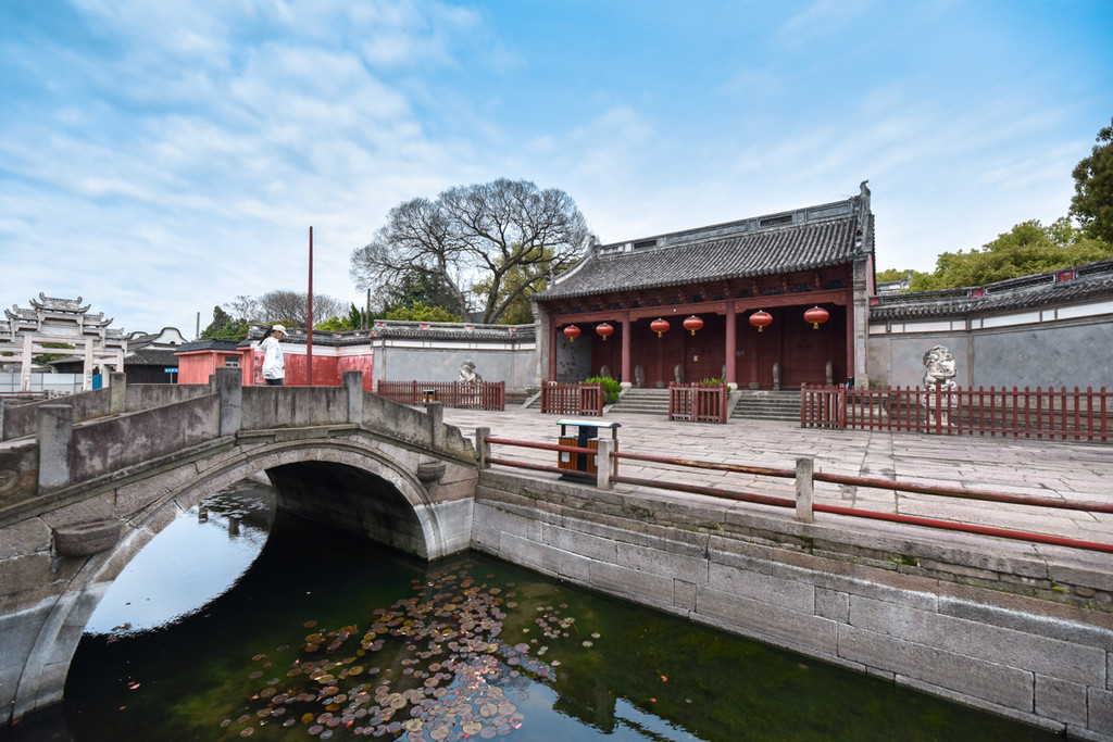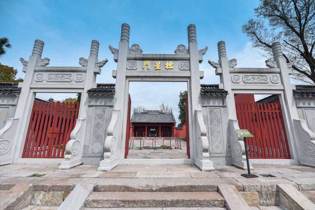 据史料记载,沿制宋代左学右庙的规制,是历代王朝的地方官办学校,地位特殊,渊源深厚。可分为前导、左学、右庙等三部分来进行游览。从上图上看,前导部分包括照壁、泮池、魁星阁等。每一处都有其来源与讲究,就说魁星阁吧,供奉有“五 文昌 ”,坐落在孔庙学宫景点入口处,十分显眼。