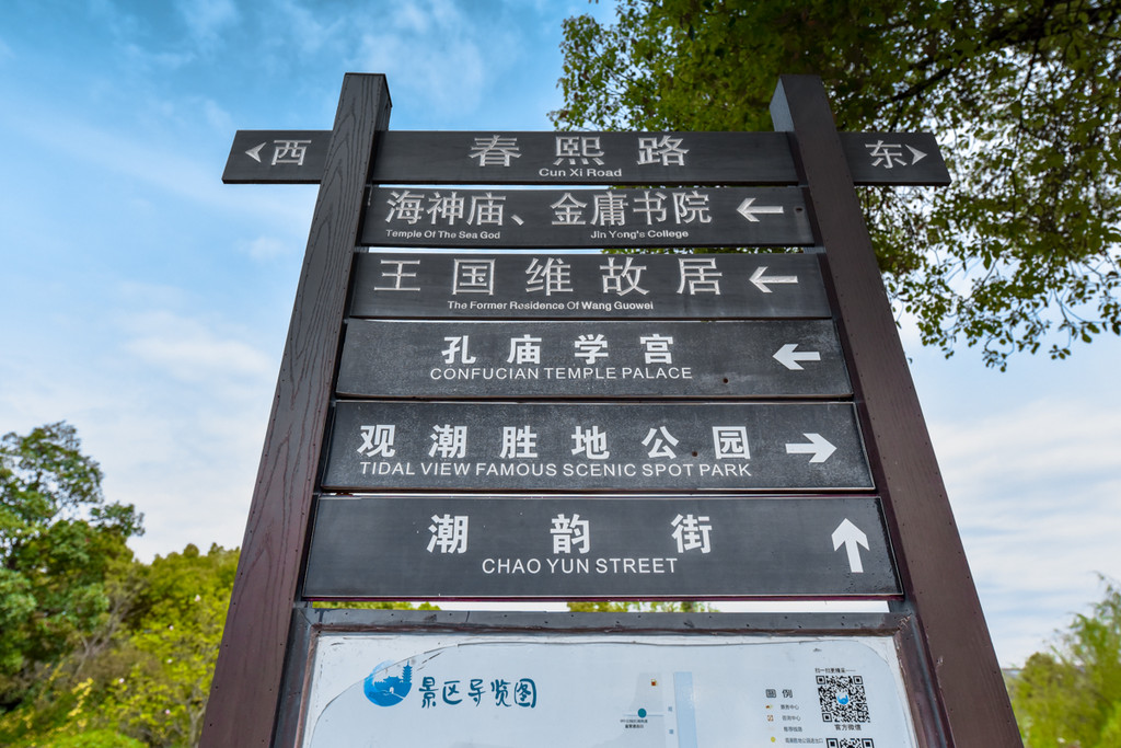 所以,海神庙,被誉为“ 江南 紫禁城”,是千年盐官古城中,最富有古建筑群文化价值、艺术价值的所在。文物古迹,举手投足间均能令你震撼。从孔庙学宫步行约2分钟即可到达海神庙,不过如果想一睹古城城垣的朋友,可以多绕行几步。此外还有和 成都 美食街春熙路同名,"春熙"之名取自老子《道德经》:"熙来攘往,如登春台。"这句诗所描绘的正是春风和煦,百姓熙来攘往,一派繁华太平的景象。所以,春暖花开时节,漫步游走在这里,也是非常不错的感觉。海神庙经城门,过春熙路,就能到达观潮胜地公园景区广场,也是非常方便。海神庙门票15元。