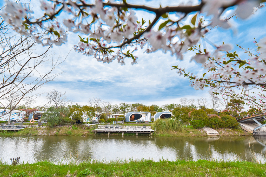 营地从2017年5月开放至今,举办了很多自驾房车营地大会,也收获了很多行业奖项。这一点,我从房车3年的使用程度与欢迎水果、洗漱用品就可以看出来,服务水准很高,名副其实的 嘉兴 必住酒店!从办理入住、环境游览,再到客房体验之后,最值得期待的就是百亩樱花林。从营地出发,步行5分,即可到达。