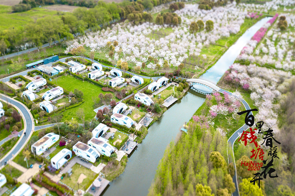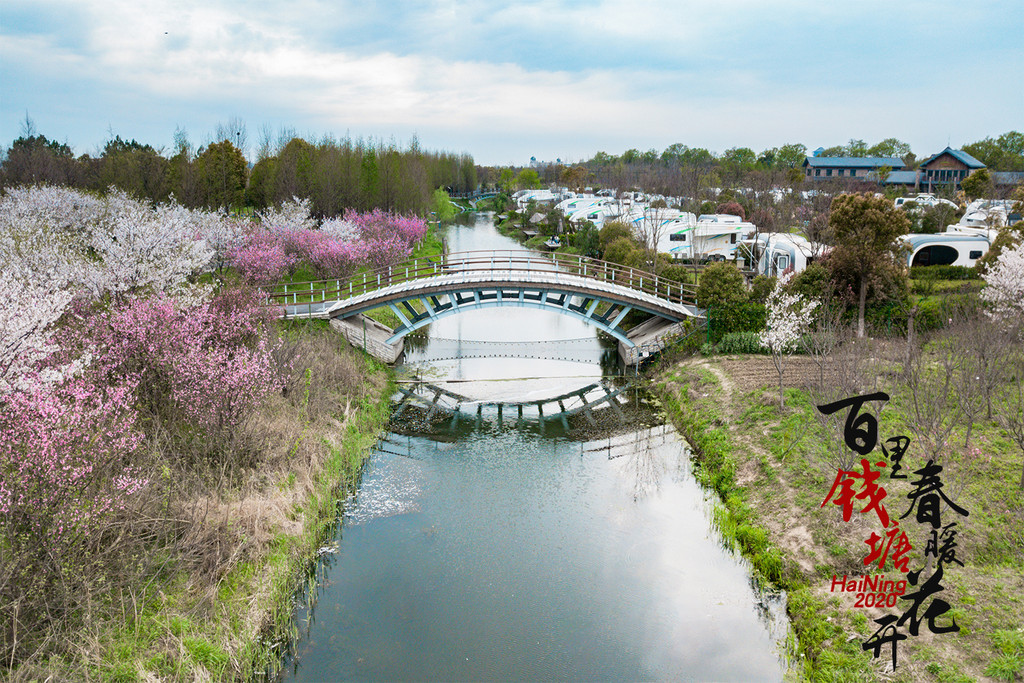 百花竞相开放,户外无限春光!疫情渐退,按捺不住的心早已飞起。想要赶在清明时节雨纷纷,樱花落尽之前,看看樱花雨,与家人踏踏青,烧烧烤,露营一次。但又担心跨省高铁、自驾不便,于是就发现了钱塘江畔的这处心灵放飞地。说走就走,也还是要考虑家人安全。与 杭州 一江之隔的 海宁 盐官镇百里钱塘观潮景区,就很近,自驾1小时就到了。