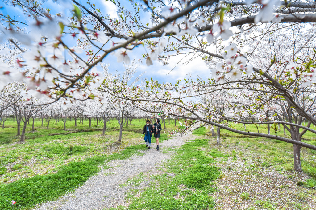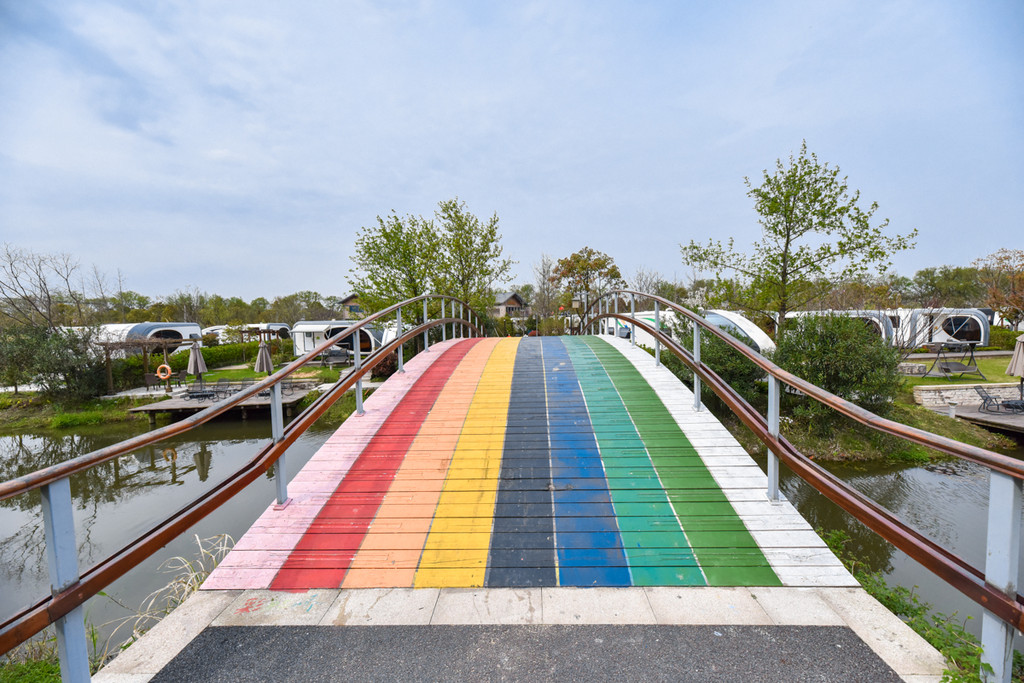 一桥之隔,就是芳草青青房车营地,樱花也是迁出于境。你在桥上看风景,却不知你本就是风景中的一道风景。你想要的诗与远方,亦或是看天上云卷云舒,此刻也是被抛却脑后。樱花林免费向社会开放,营地与世隔绝,却也倍感隐秘。