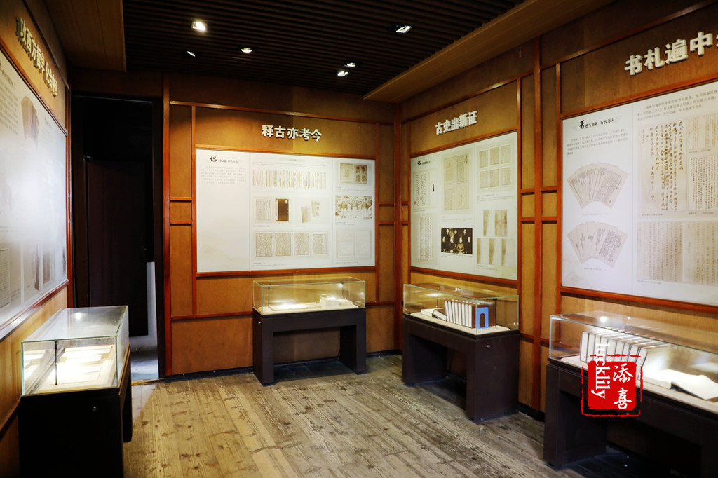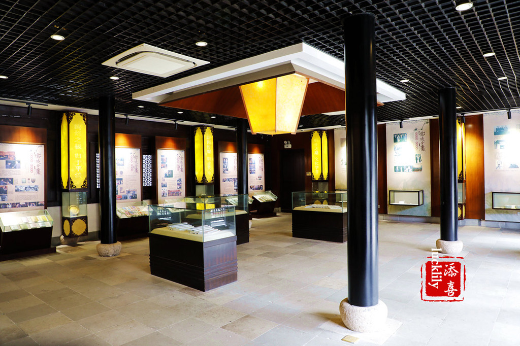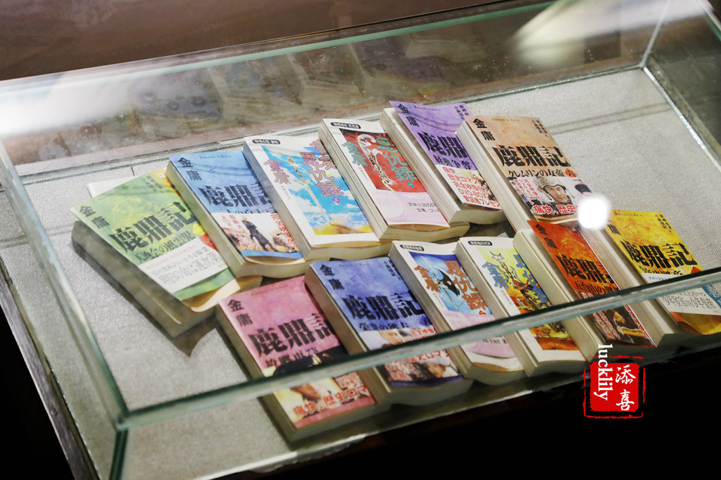 后厅是一个展厅,展出金庸先生珍贵的手稿、收藏品、创作书籍、刻章、宝剑等。