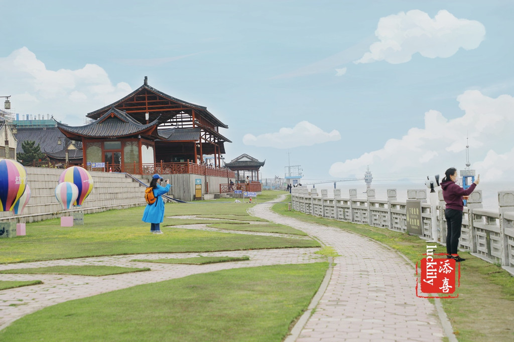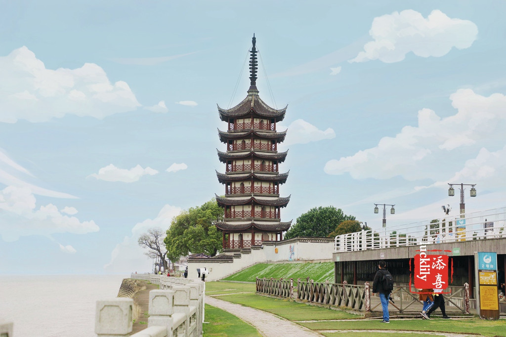 在观潮公园内的最佳观景位,就是这座占鳌塔,塔上是观看“一线潮”的最佳场所,也叫镇海塔,始建于宋代,重建于明万历四十年(1612年)。它与镇海铁牛一样,都是为了压住潮头,镇锁狂澜。