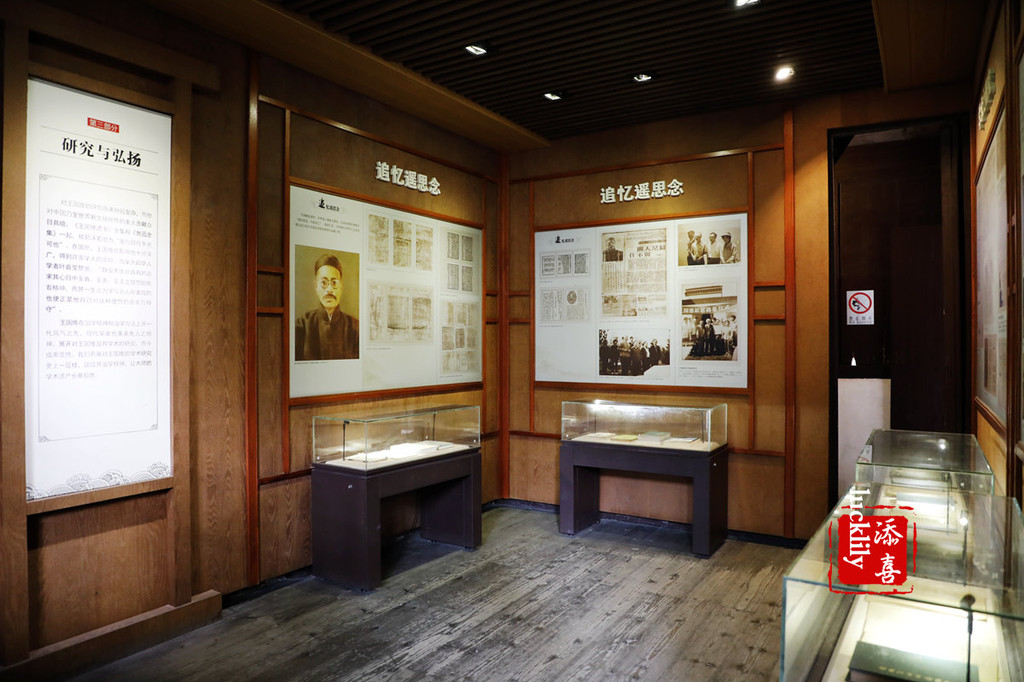 大厅内陈列王氏一生十二幅画像及其它资料。庭院坐北朝南,建筑为木结构。前厅正中置放王国维半身铜像,陈列分三部分:第一部分,介绍王国维故乡、家世及其生平。第二部分,介绍王国维的主要学术成就,陈列王氏各种著作和手稿。第三部分,为国内外专家、学者研究王国维的论著。