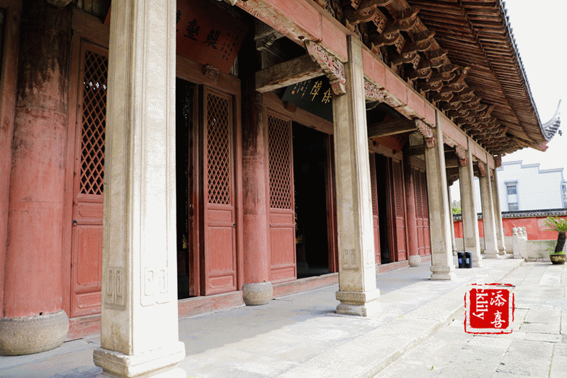 从王国维故居出来,行车大约不到两分钟就到了孔庙学宫,孔庙学宫是沿制宋代左学右庙的规制,是历代王朝的地方官办学校,地位特殊,渊源深厚。盐官孔庙学宫是近年在在原址重建的,景区内还能看见旧时学宫铺地的遗址。可分为前导、左学、右庙等三部分来进行游览。