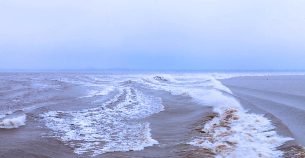 没有潮汐之时,这里宛如诗中之景:潮平两岸阔,风正一帆悬。宽广的江面一眼望不到边际,耳边,是风声与水声。
