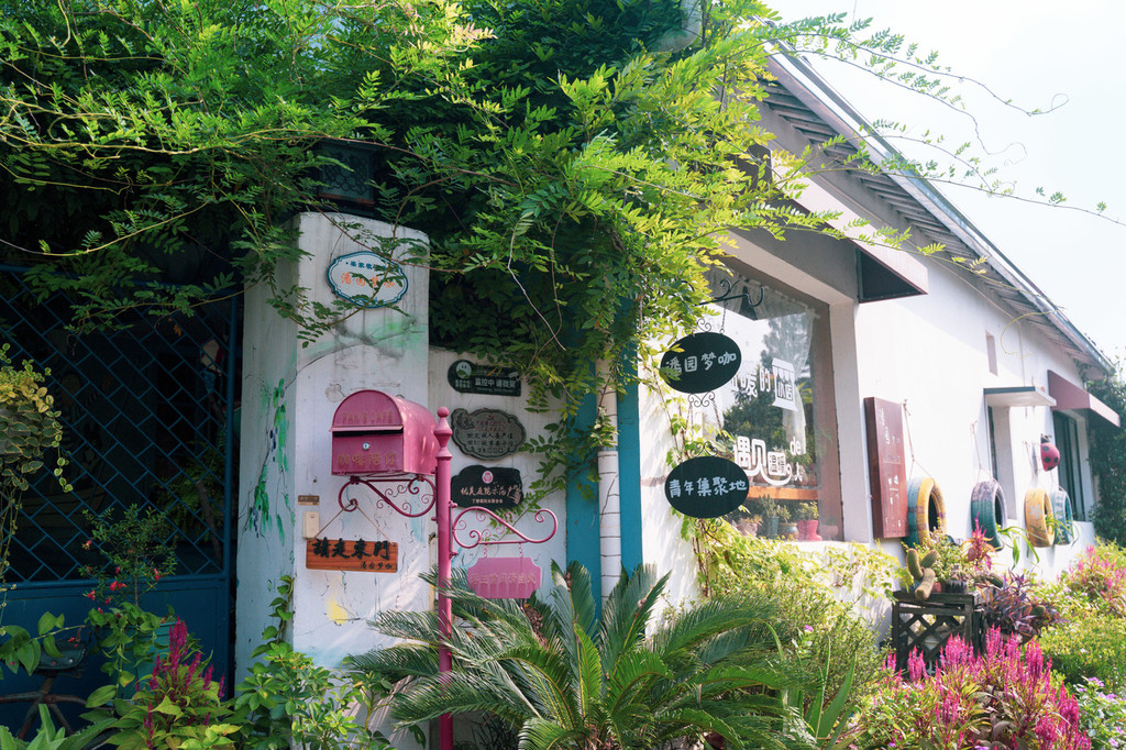 潘园是整个梁家墩的第一个咖啡馆,至今已经将近4年了。店主小潘把自己的民居改造成了这家咖啡馆,这里一草一木乃至一个小摆件都是老板娘亲手操办的。