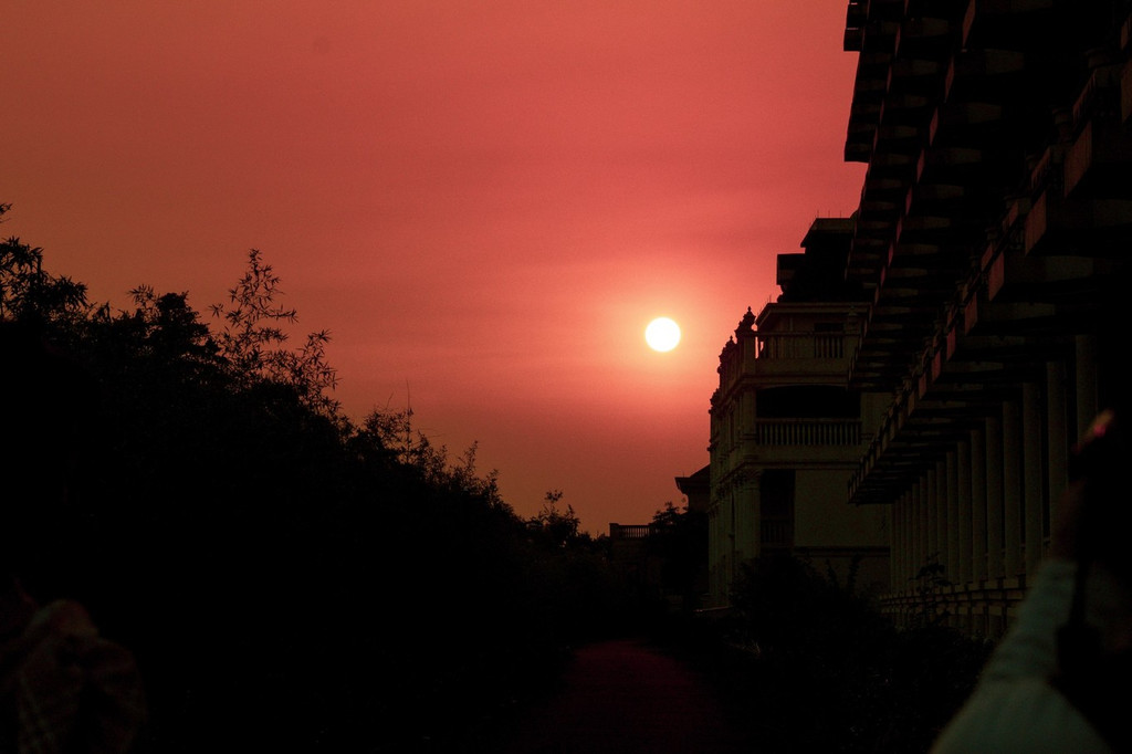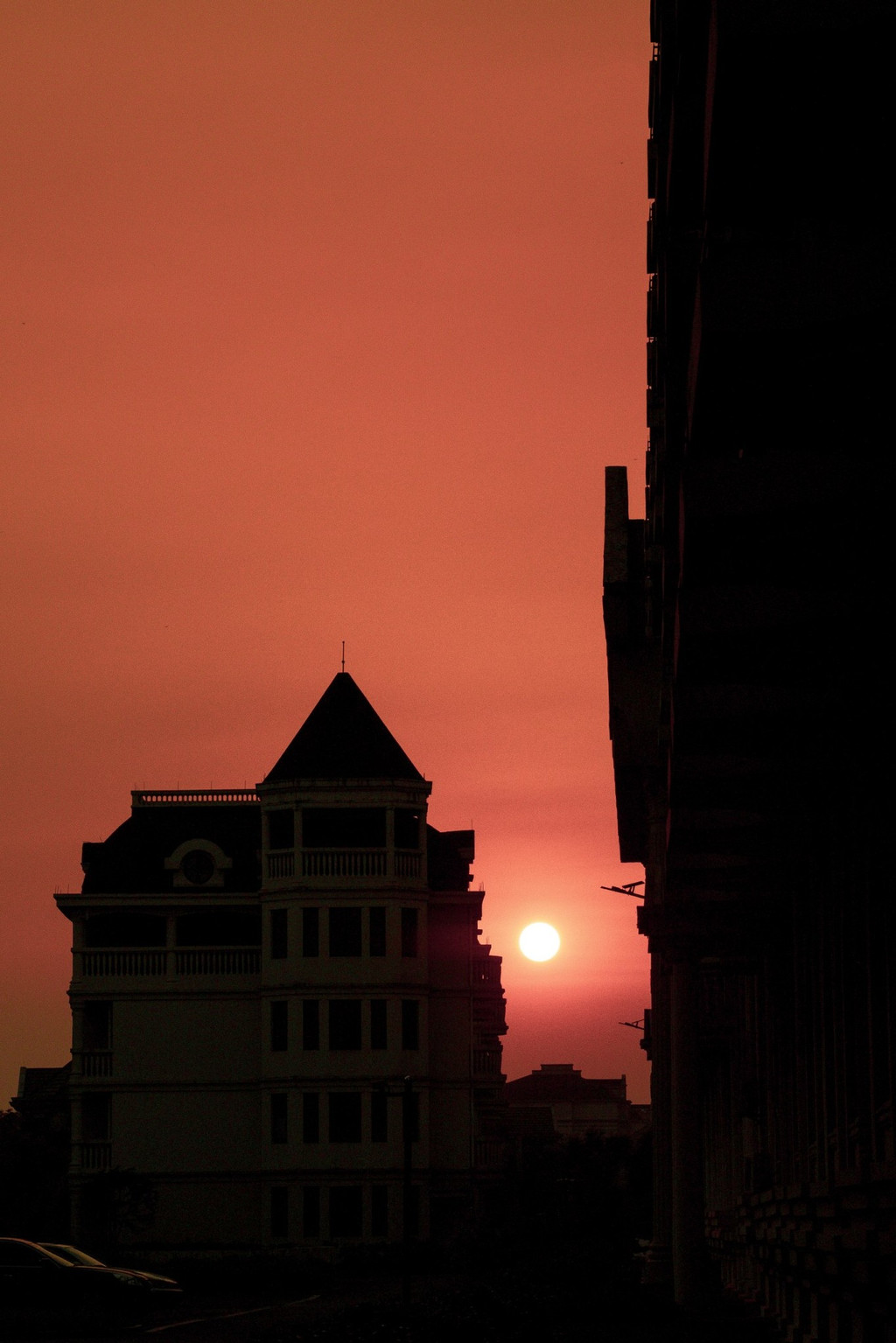 黄昏时的光线像某种复古风格的滤镜,将一切景物都镀上了橙黄的色调。回望来路,洋楼在夕阳里是一个凝立的黑色剪影,是时候回家了。