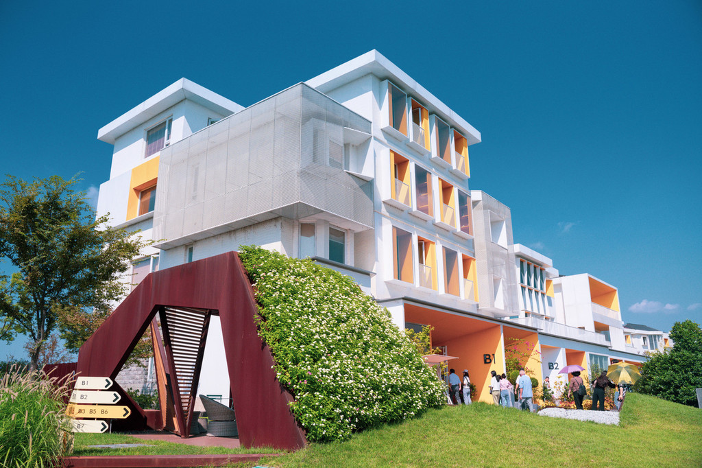 在花卉城后有一座童话般鲜明烂漫的小镇——虹越 美国 园民宿。当天天气很好,纯白与橙黄相间的小楼错落在绿树草坪间,有一种误入了 佛罗里达 州乡间的错觉。