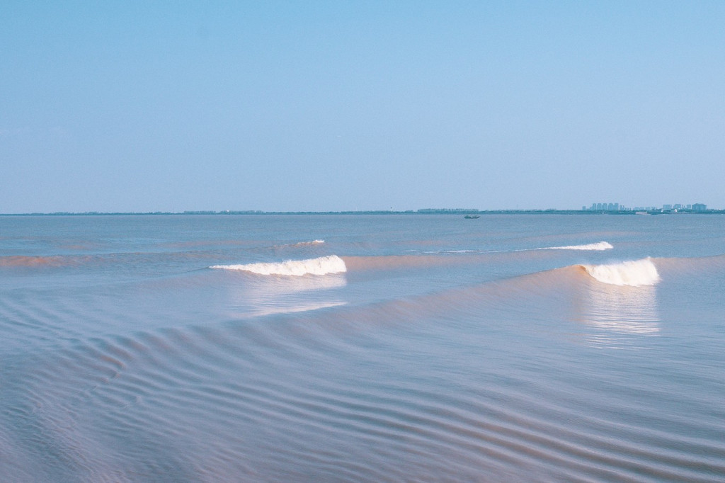 观潮之日,以农历八月十八日前后几天最佳。然而这次来得匆忙,未能赶上最好的时间,潮水只有一点点。