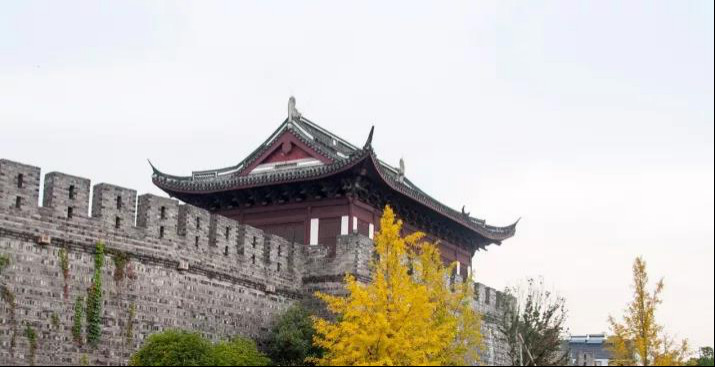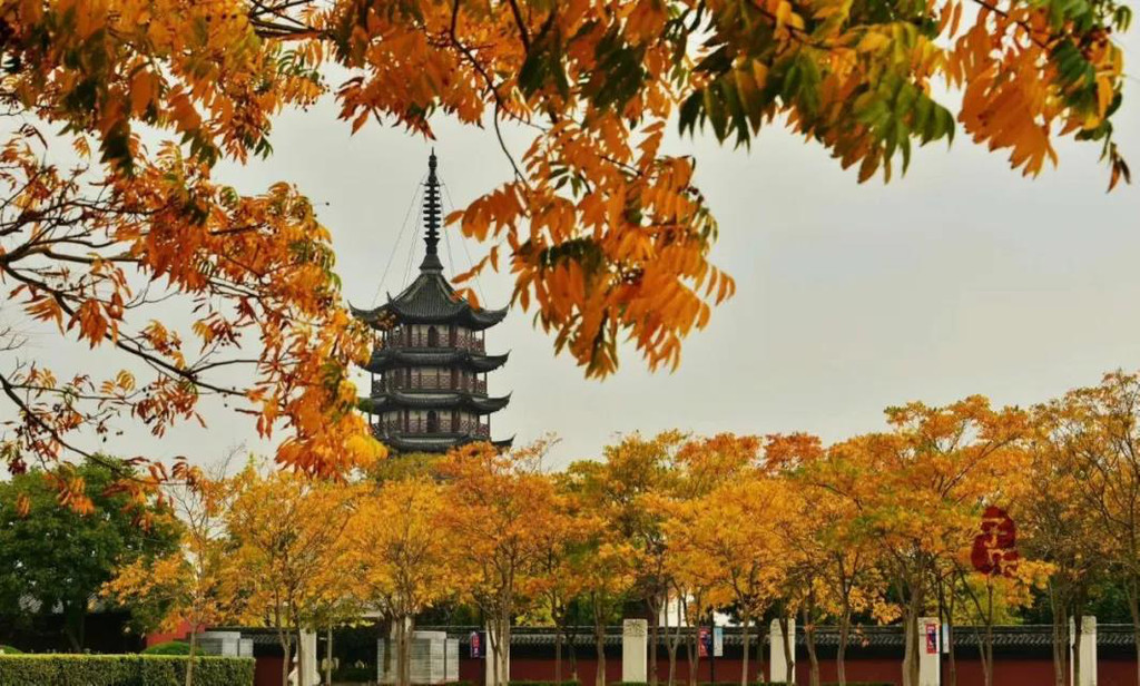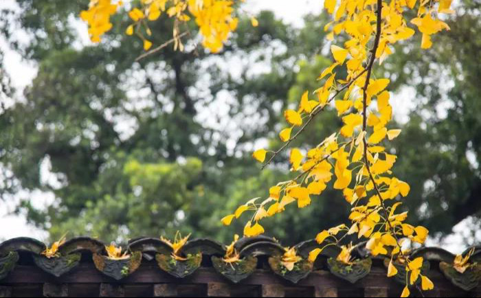 在深秋的时节遇见小城盐官,银杏泛黄、枫叶流丹、秋潮渐起
