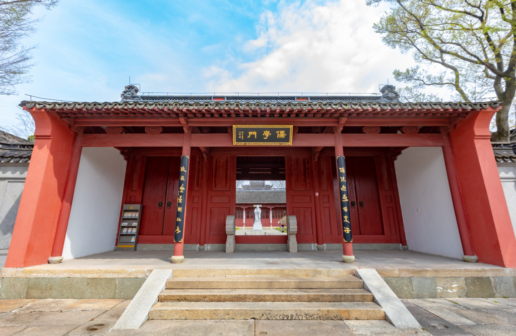 遵循左学右庙的古代学堂规制,分为前导、学宫、孔庙