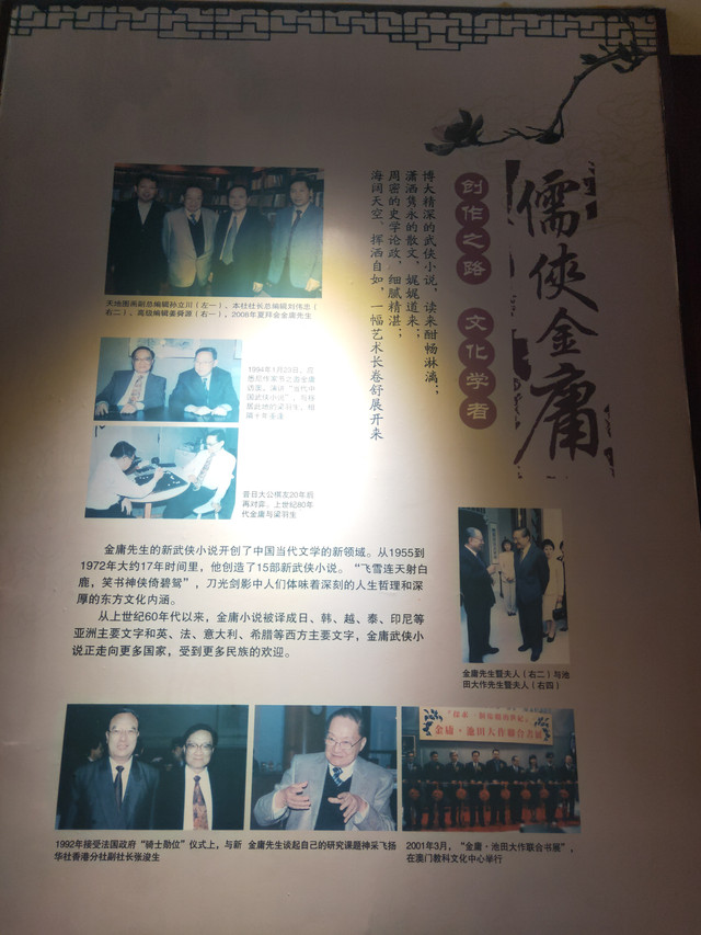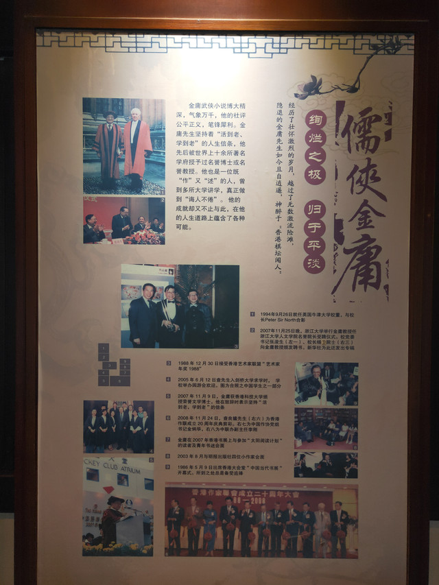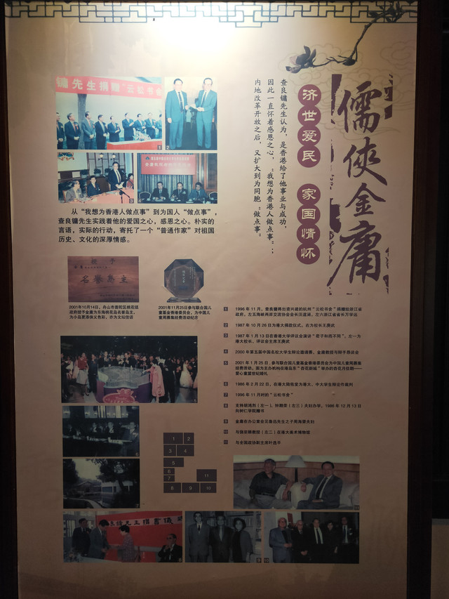 第三站:金庸书院。从小就被金庸作品栽培大的我,怎能不来此逛逛?好像没看过《鸳鸯刀》,尤记得第一次知道空心菜是在《连城诀》中。蹭导游说奠基仪式时,金庸先生还来过