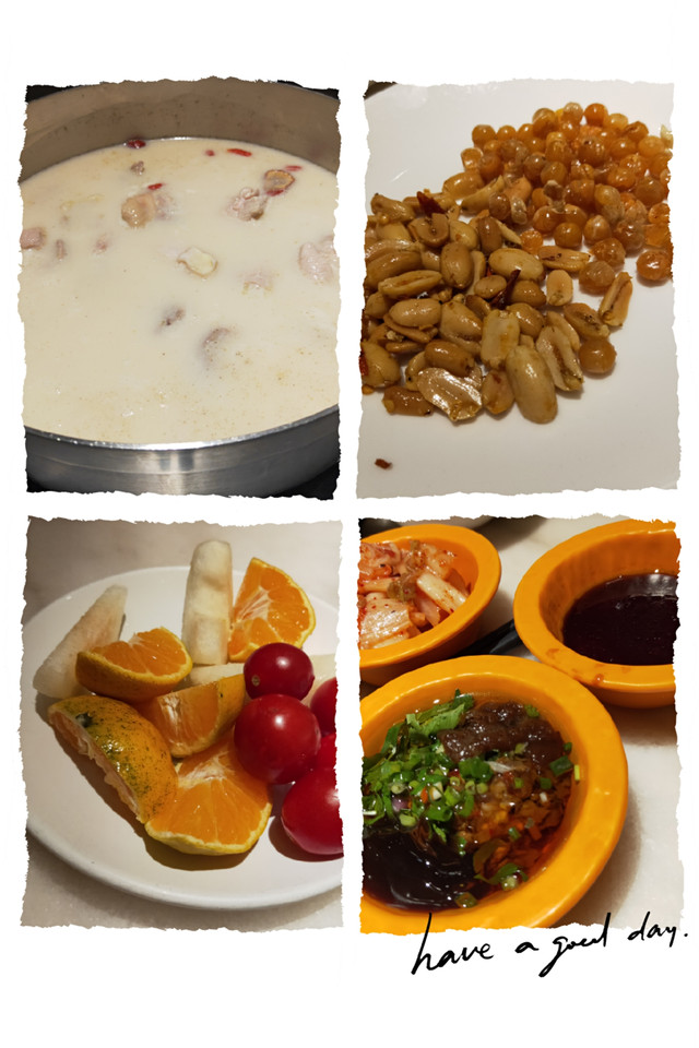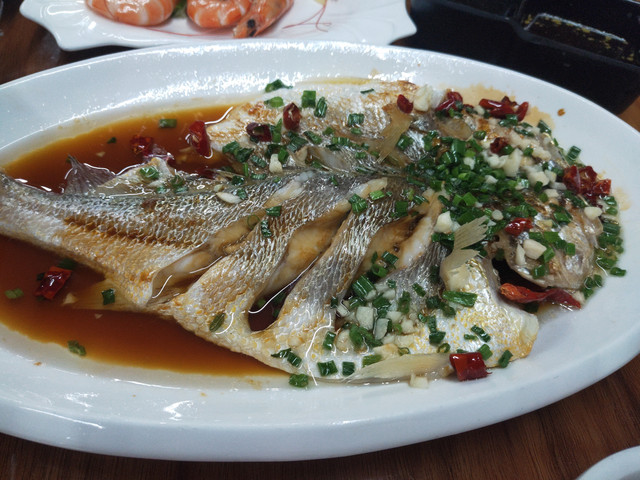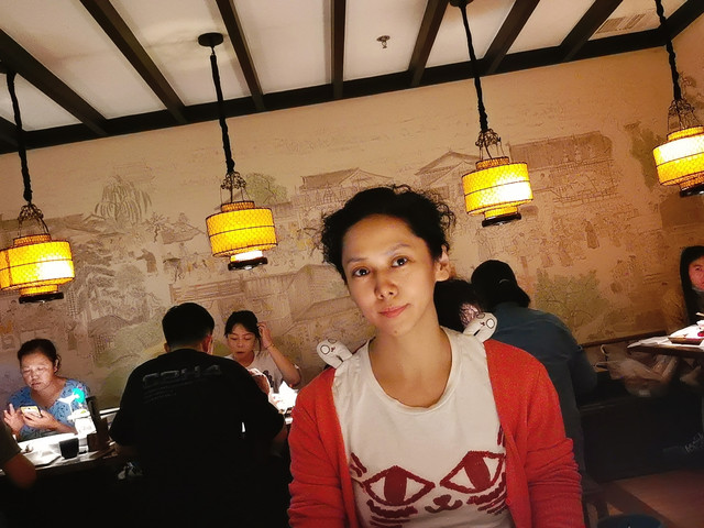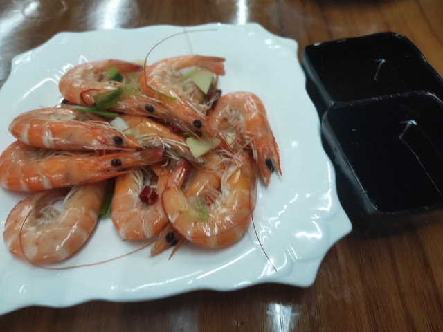 感恩老天爷垂怜我正踌躇订哪的酒店好,出码头时遇到一位小美女,也是单人出游,正好结伴可以拼饭。怎一个幸运了得?晚饭太丰盛,让我吃了好几顿简餐的人大快朵颐,喝茶消食。