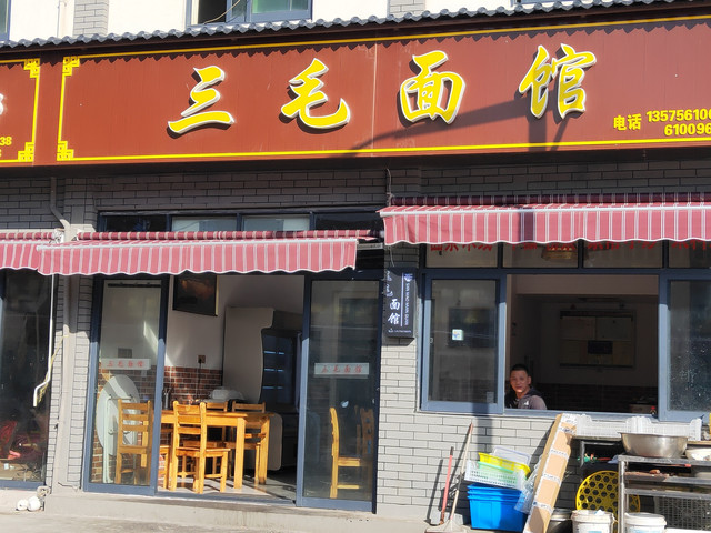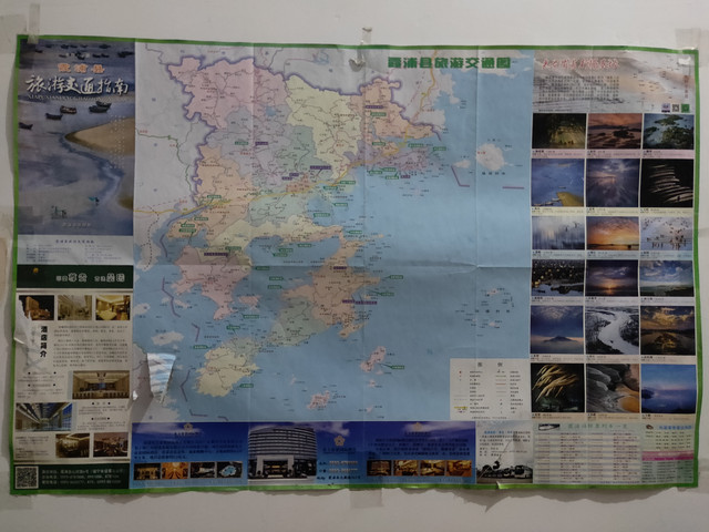 枸杞岛+嵊山岛。历尽艰辛,终于来到此岛,是周末的原因吧,游人还比较多。有个心大的游客把行李落下了,船马上开,只能联系老板寄到家里去,还好有同伴,估计充电什么的能解决。这也提醒了我,以后住酒店一定要留联系方式。为环保不拿名片就拍一下照片。入住的酒店旁边就是公交车站,跨海大桥就到隔壁的嵊山岛。今天起床早,先找到别人游记提到的“三毛面馆”打个尖。然后打车去“无人村”,要价30,砍到25。