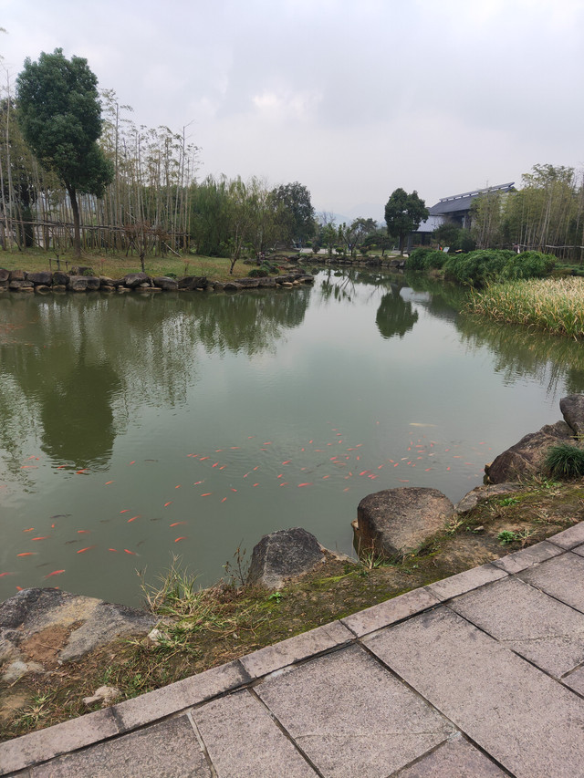 农产品实验基地没逛多久就出来,幸亏如此,雨下大了。沿河走着,水+竹子,忽然想念柳州了。裹上厚衣服在戏台避雨嗑瓜子,这里有台电视一直在播放梅花洲的细节,周末呼朋唤友到这里聚一下还是蛮不错的。