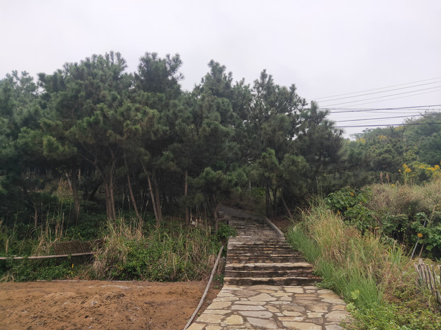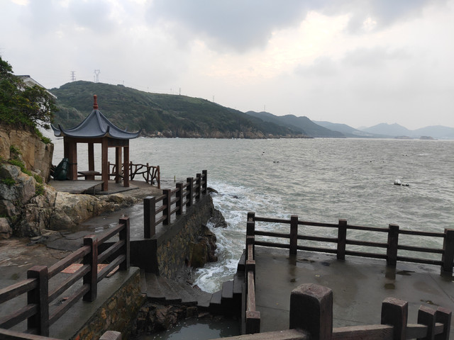 昨天晚上得知,因为有风,这两天都没有去小岛的船,纠结了一会,决定在这里慢慢玩几天,因为来一趟不容易。况且这里正是我追求的安静,游人少。只是天气不好,阴有小雨,照片拍得不理想。驻地附近有个公交车205路,昨天就坐过了,今天继续,到基湖村(基湖海滩),有登山步道,太好了!昨天运动量不够,今天补齐。
