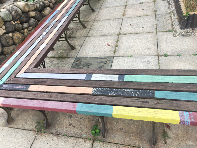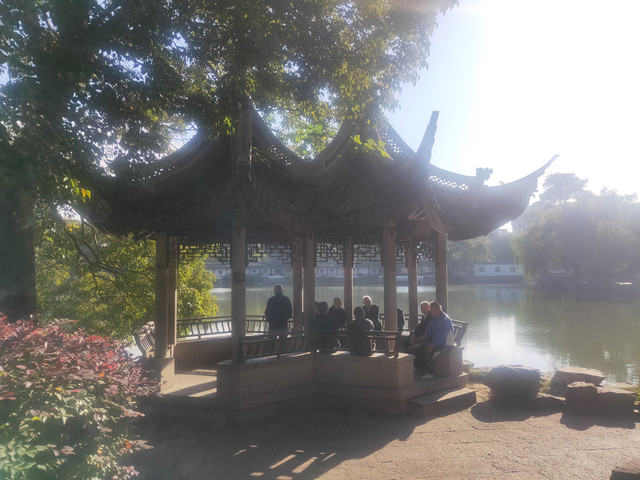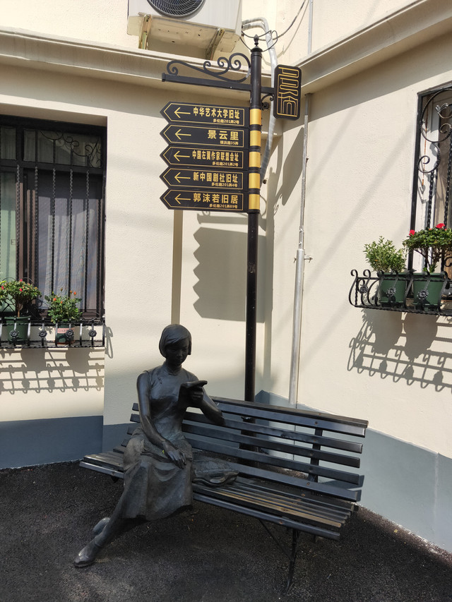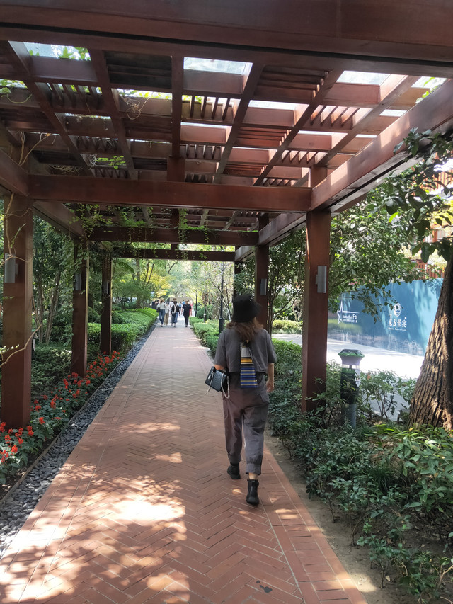 走了半天,发现“鲁迅纪念馆”此门不开,回程无意间来到“甜爱坊”,我第一次用自拍杆(迪士尼不让用),看到两个阿姨走过来,赶紧让贤。在长椅上休息时,还看到阿姨换了条裙子继续拍。什么时候都得有爱美的心呀!