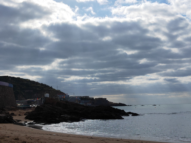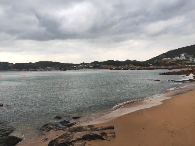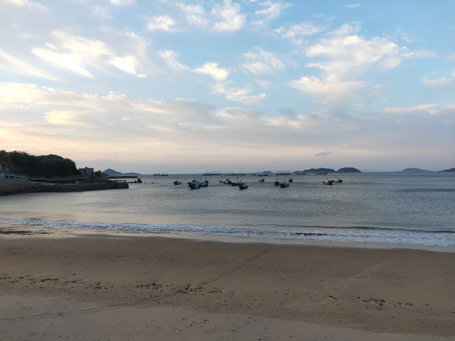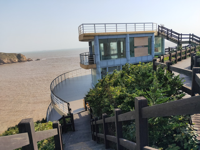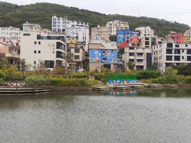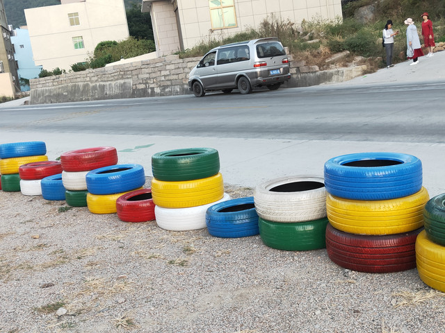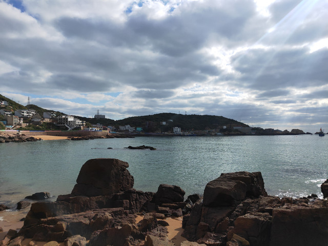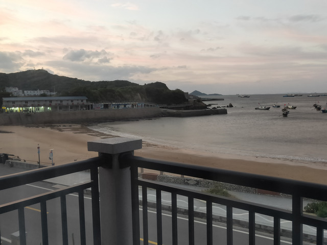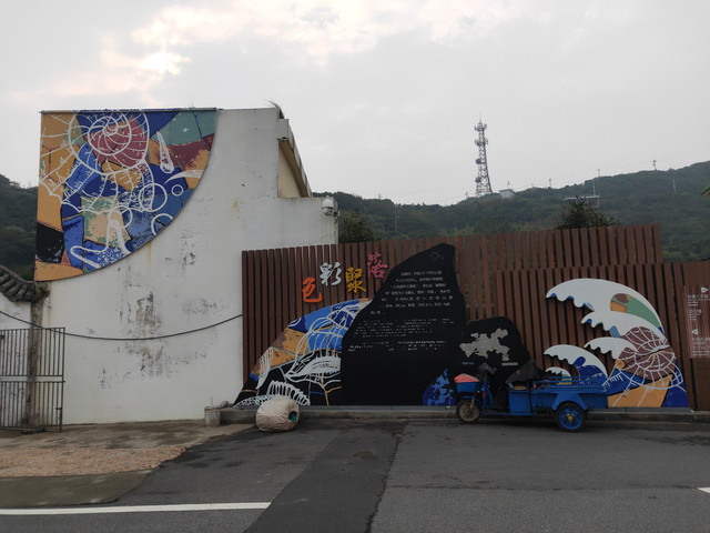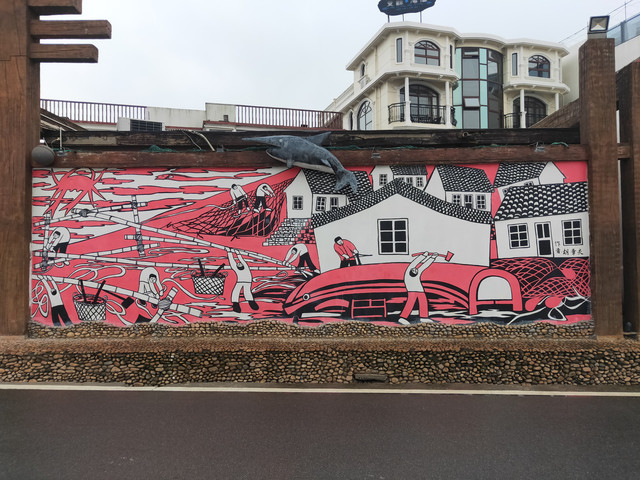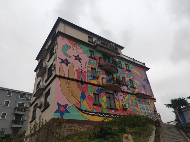 嵊泗列岛的嵊泗本岛:经过砍价,现定的海景房200一天,环境很好,只是后半夜被冻醒,把隔壁床的被子压上。睡到清晨6点多,细微的海浪声把我唤醒,坐在酒店的海景房喝着茶往外看:有游客在捡贝壳,有美女在溜拉布拉多犬,早起劳作的人已经在忙乎了。酒店的工作人员还没醒,自己吃点早饭。想睡酒店吧,一看电视就跳闸,还是出门走走吧。这里是“东海渔村”,房子外五颜六色的据说是渔民自己画的画。跟前些日子每天两万步截然不同,这里安静,游人稀少(跟工作日有关),适合发呆 !其实嵊泗列岛从上海走会更近些,无奈我还有嘉兴和绍兴的行程,也只能这样了。飞上海的朋友可以直接坐车船联运到此,然后乘公交或打车去想去的地方。(没有滴滴,我们试过了)