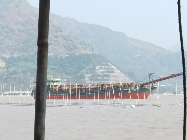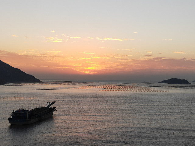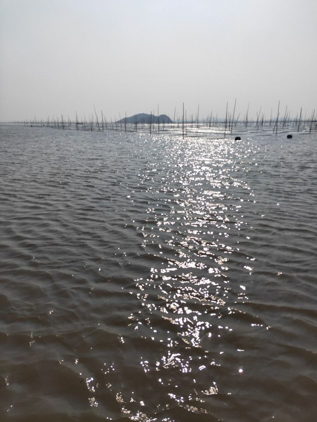 走去妈祖庙,这还是历史遗迹呢!行李收拾得差不多,9点和拼车的姐姐们一起坐船出去耍,6点还是滩涂,这会已涨潮,船才能划出去。这里种植的紫菜,黑色的才是,绿色是水草,要都是绿色就赔了。因为八月份要买种子(菌群)回来,每天涨潮都要把绳子重新绑紧,落潮要反操作,整个秋冬季可以收六茬。