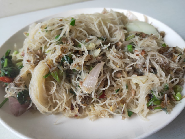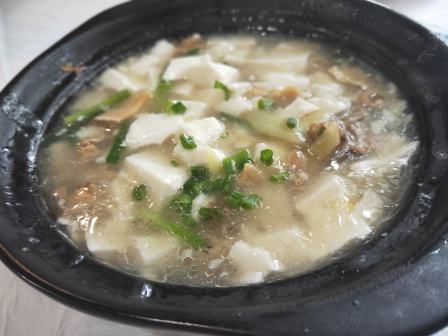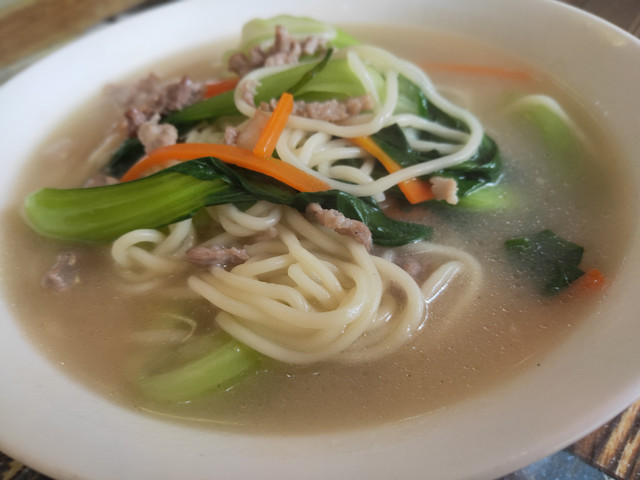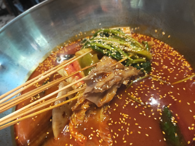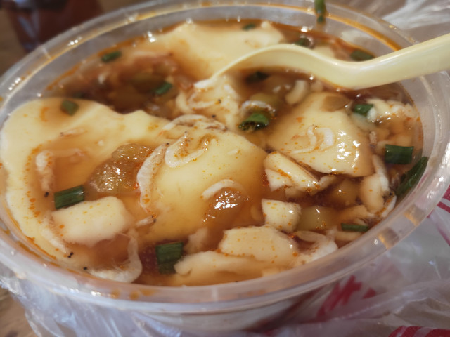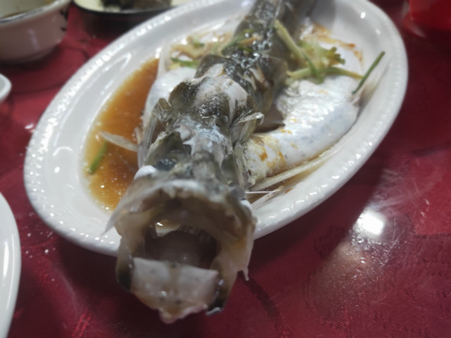 去镇上点了一个麻辣烫,可是却没有麻酱,只能拿醋和辣椒蘸着吃。话说前一天黄昏时我乘车,司机说,前面就是东海渔村,走着就到了,我只能回“脚疼”。那天已经两万一了,想少走一点还被嫌弃。