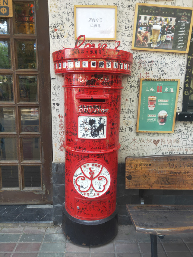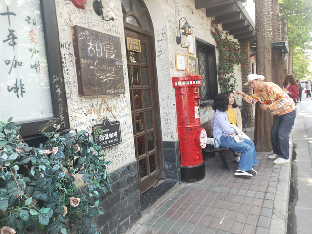 网红“爱心邮局”就在这,只见大叔在指导两个女孩 拍照,所以没人的空镜没拍成。