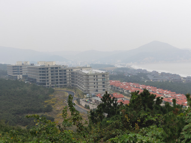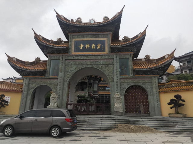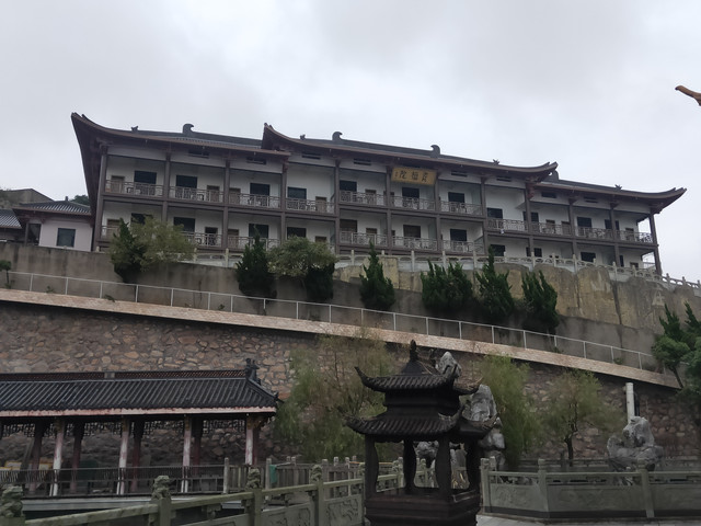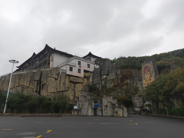我们所在的东海渔村真是个安静的避世圣地。中午吃个下饭菜,雨又来了,睡酒店终于成行。快4点了,雨才停,出发。公交车一站地来到大悲山下,往上走20分钟,是“灵音寺”,10元门票。里面在翻修,都到吃晚饭时间了,一位路过的僧人还调侃我停下喘息。居然还有这么多僧人在这里修行,赞